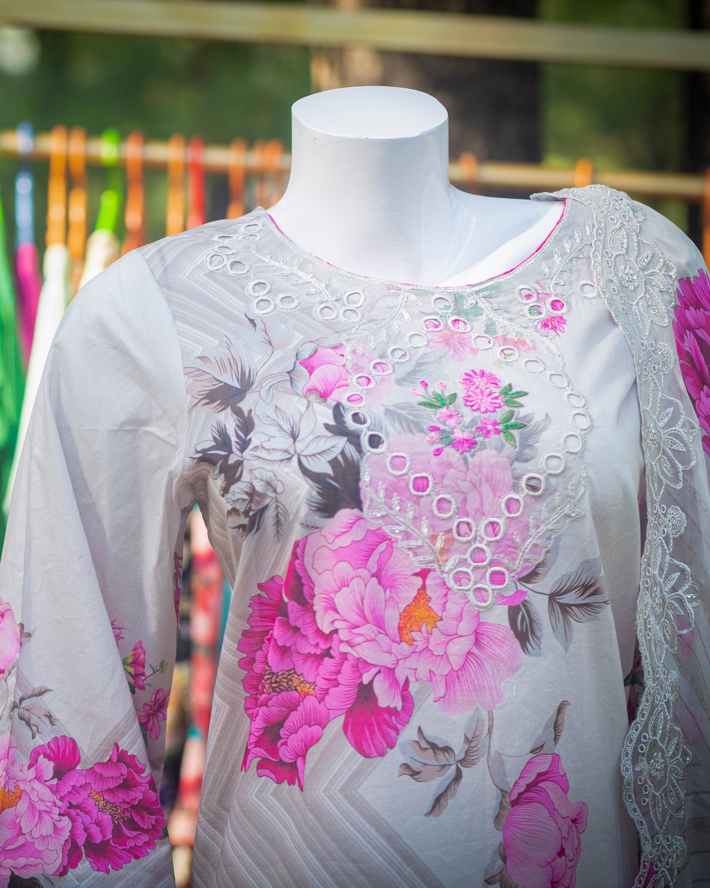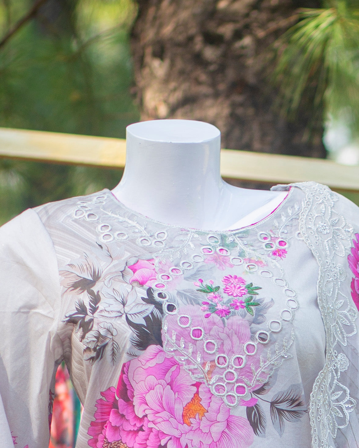 🧵 Shirt Fabric: Lawn (Fully embroidered chikankari with cutwork)