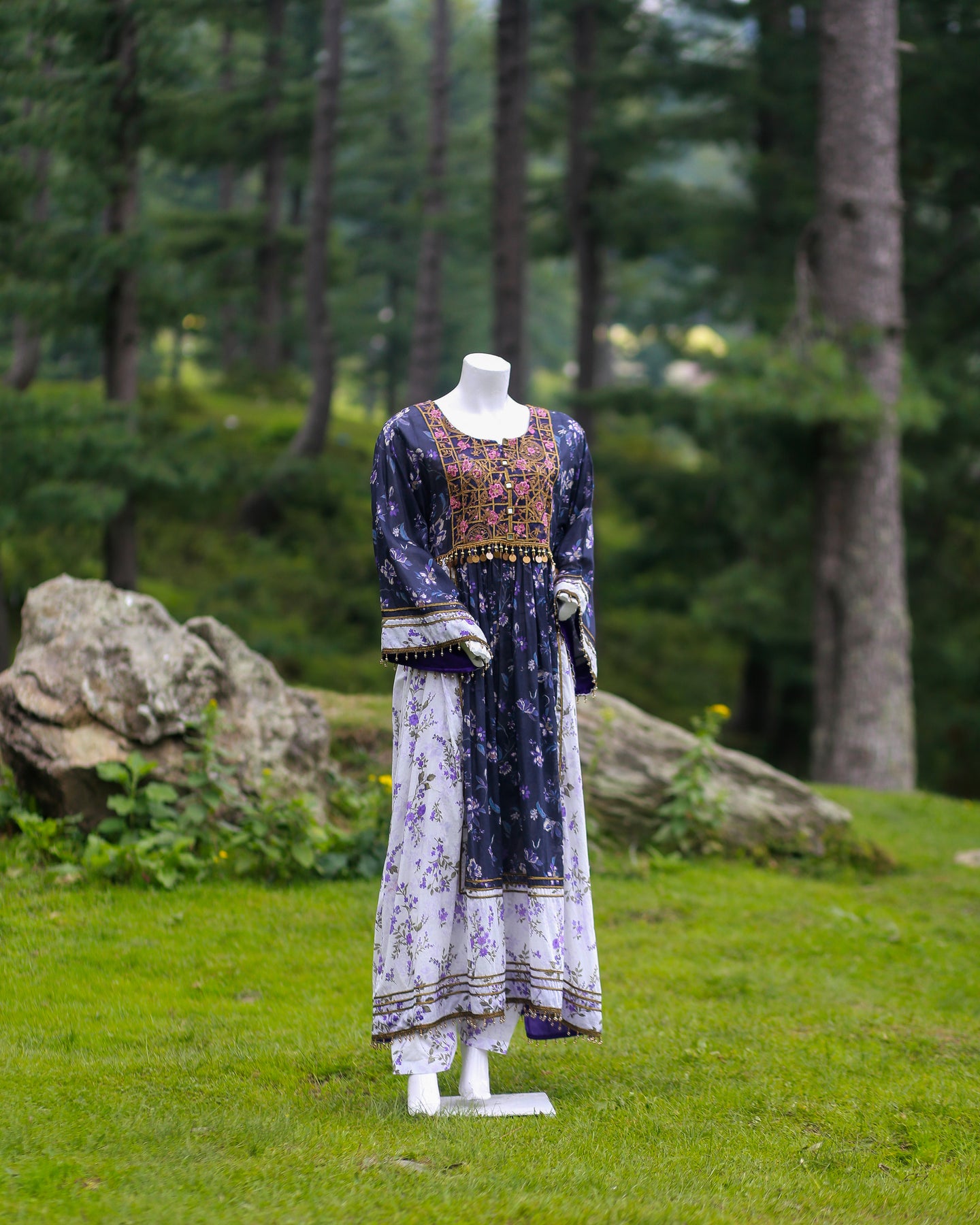 Paired with a printed lawn trouser, this outfit blends intricate detailing with everyday comfort—perfect for festive occasions or stylish daywear.