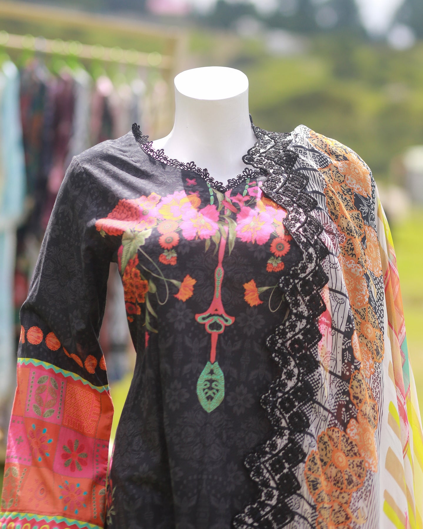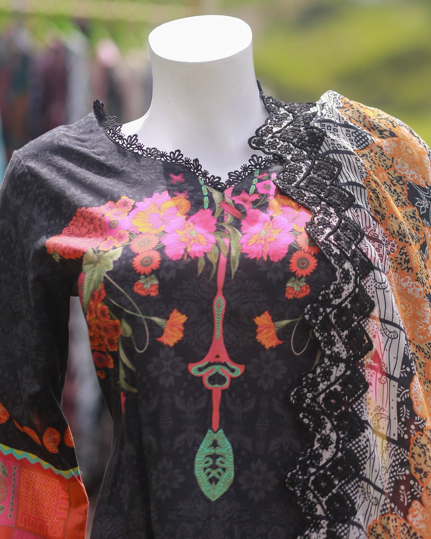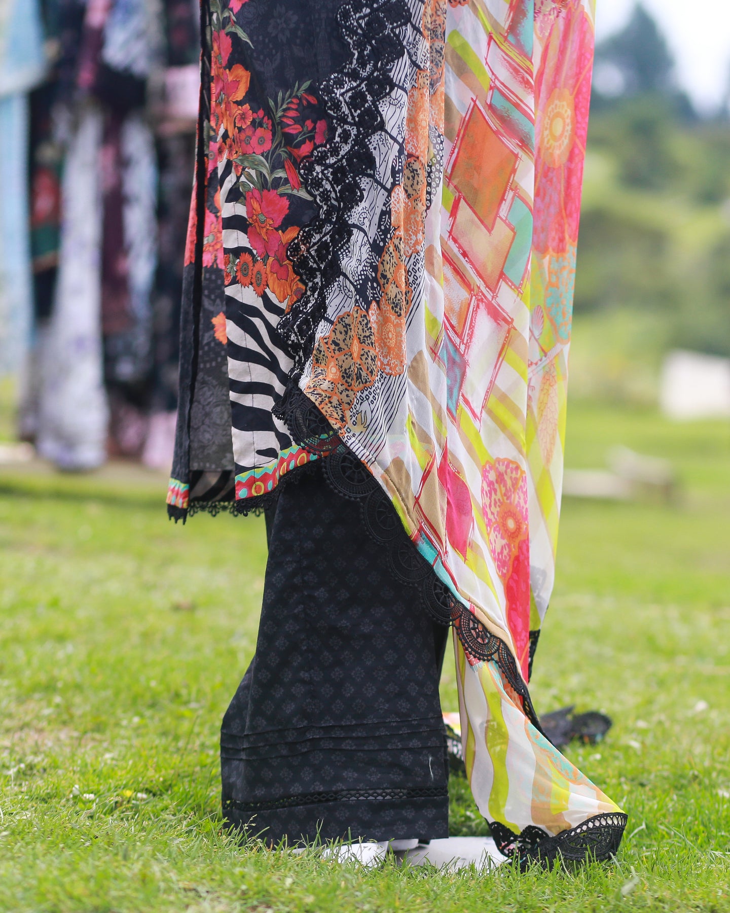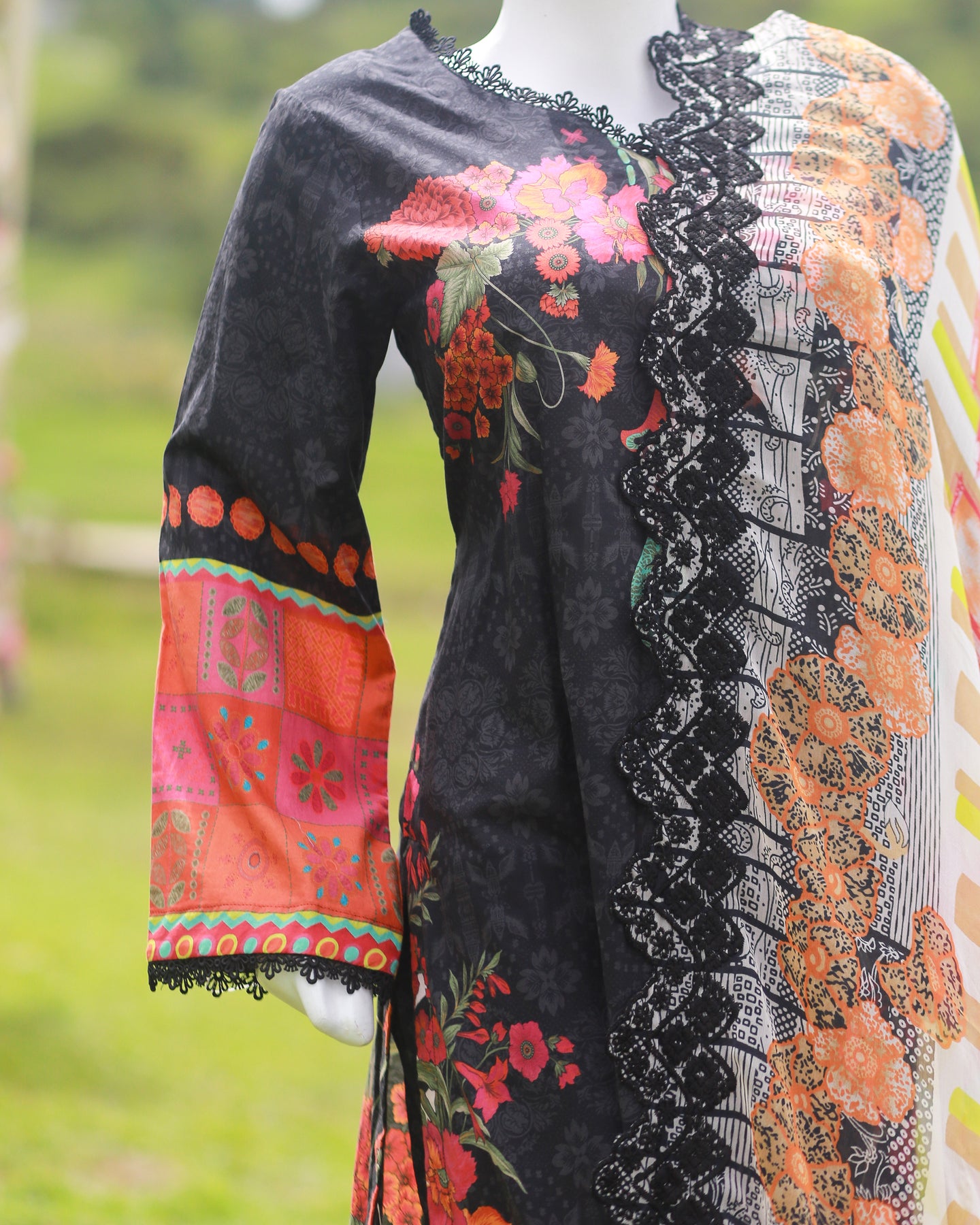 🧣 Dupatta Fabric: Chiffon (Printed with cutwork & lace)
