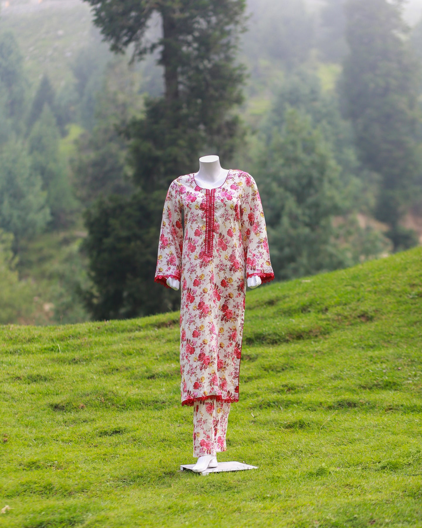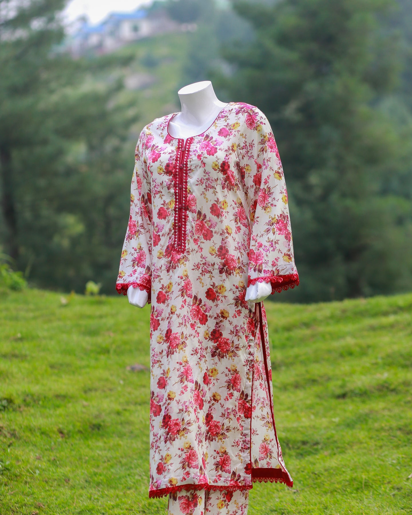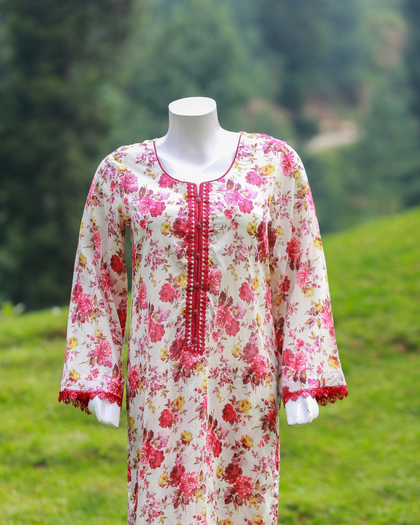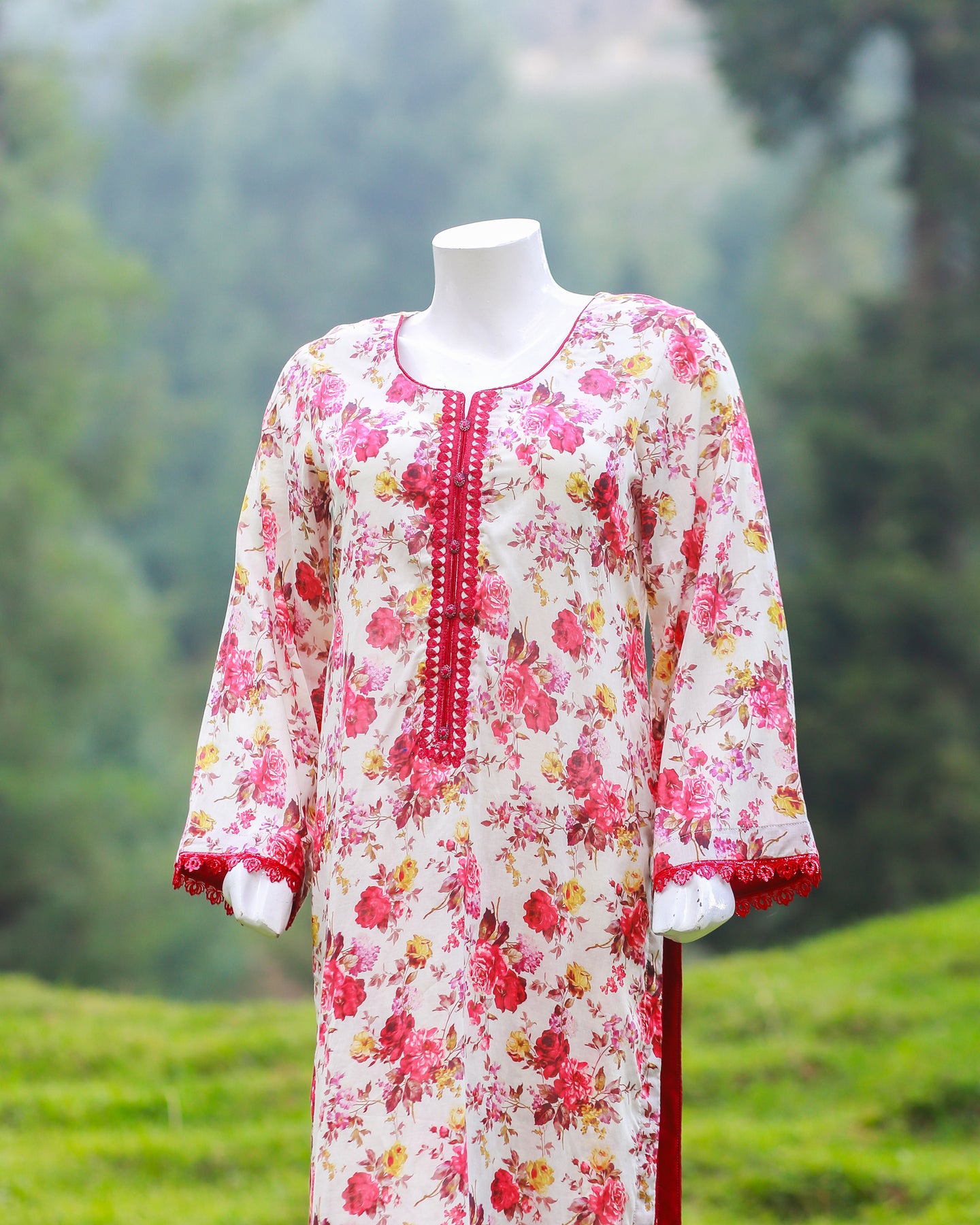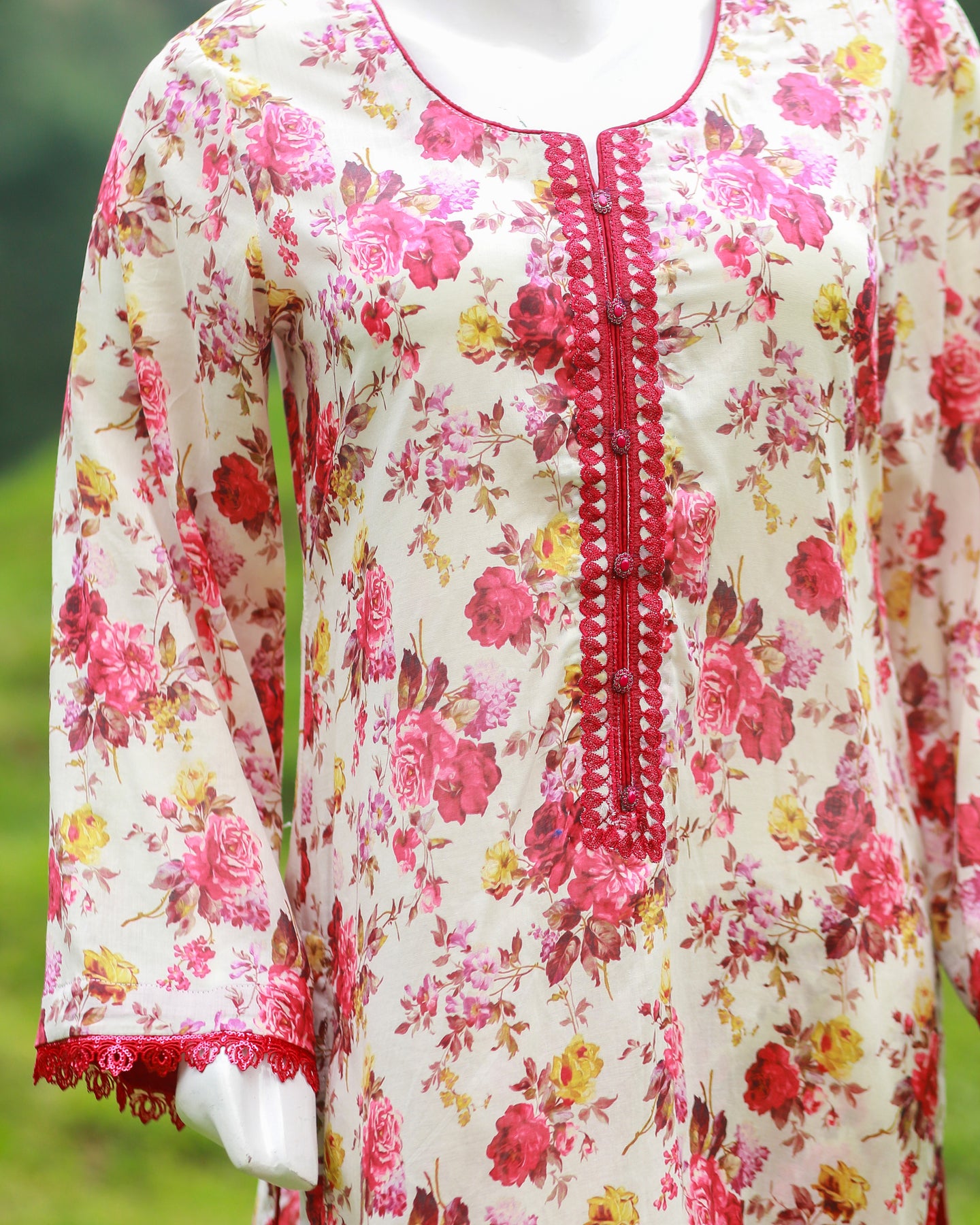 🧵 Shirt Fabric: Lawn (Printed with buttons & lace)