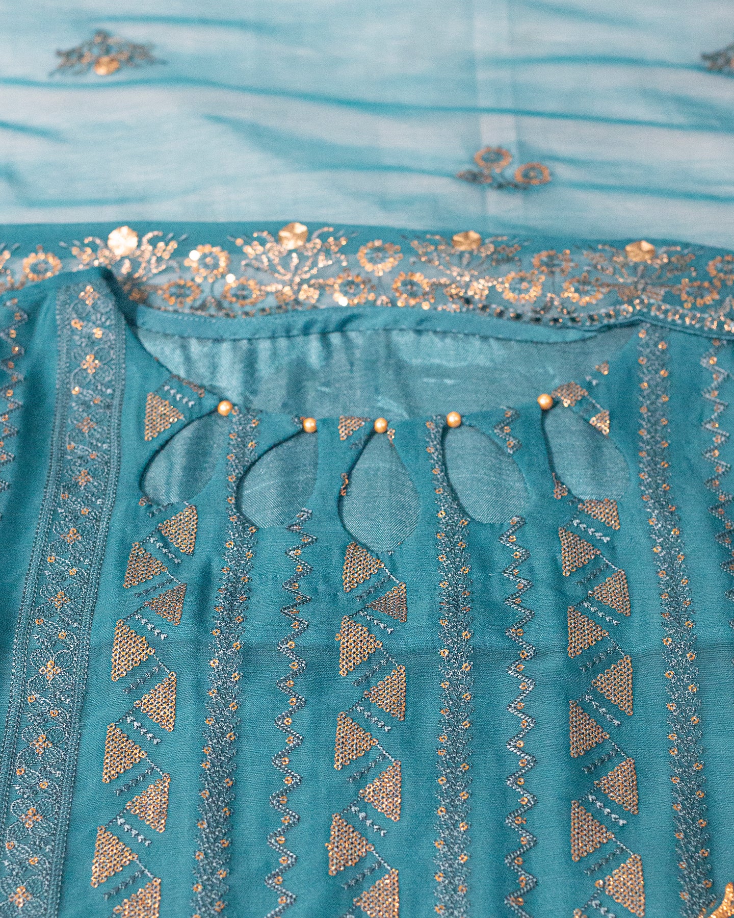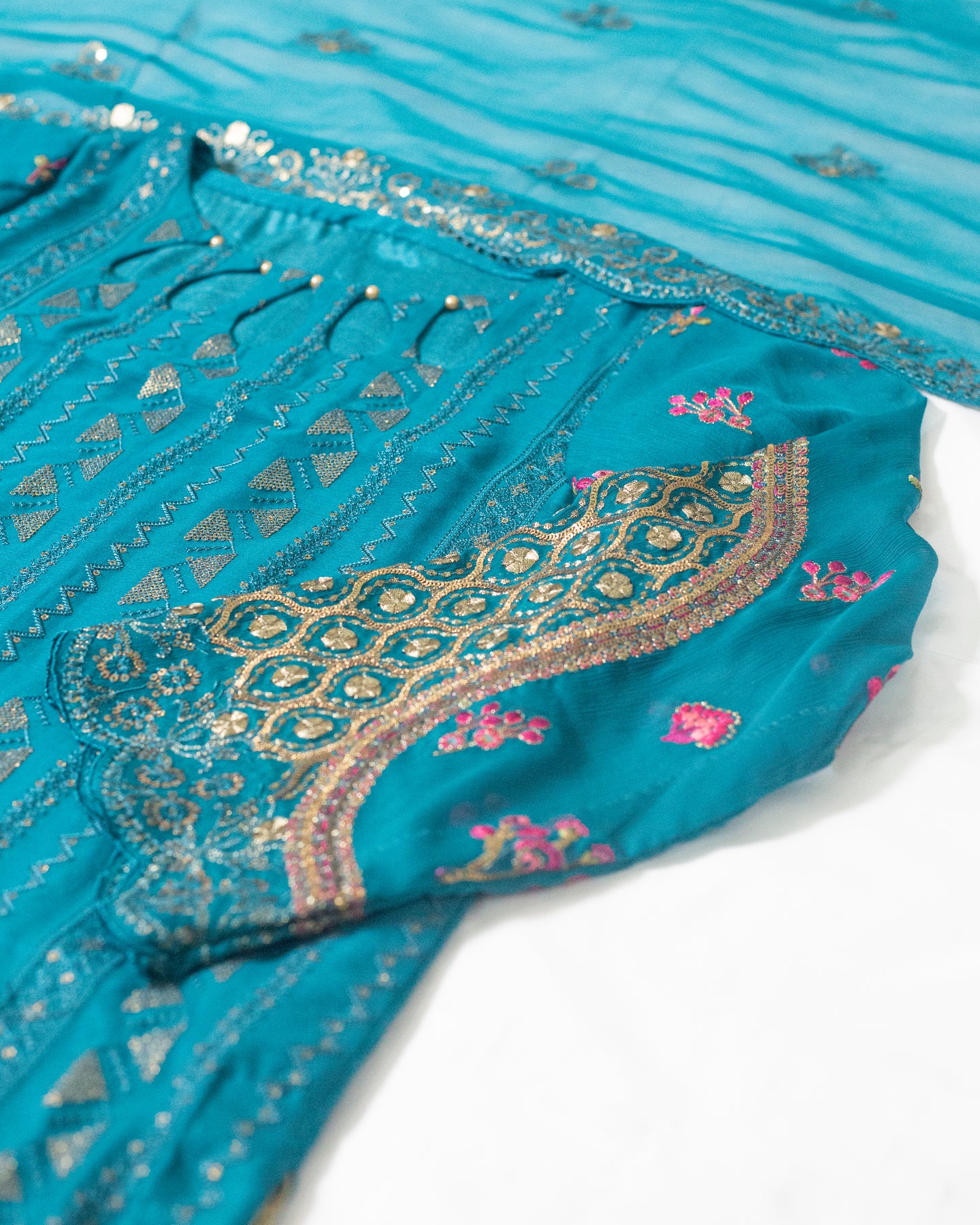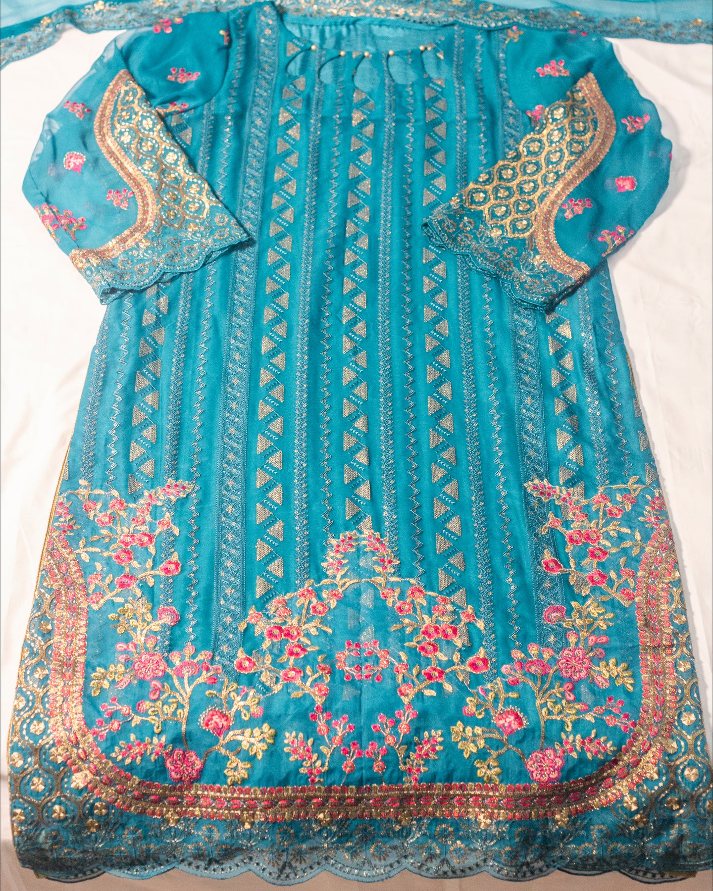 💫 Elegant Embroidered Chiffon Shirt – With thread & tilla work