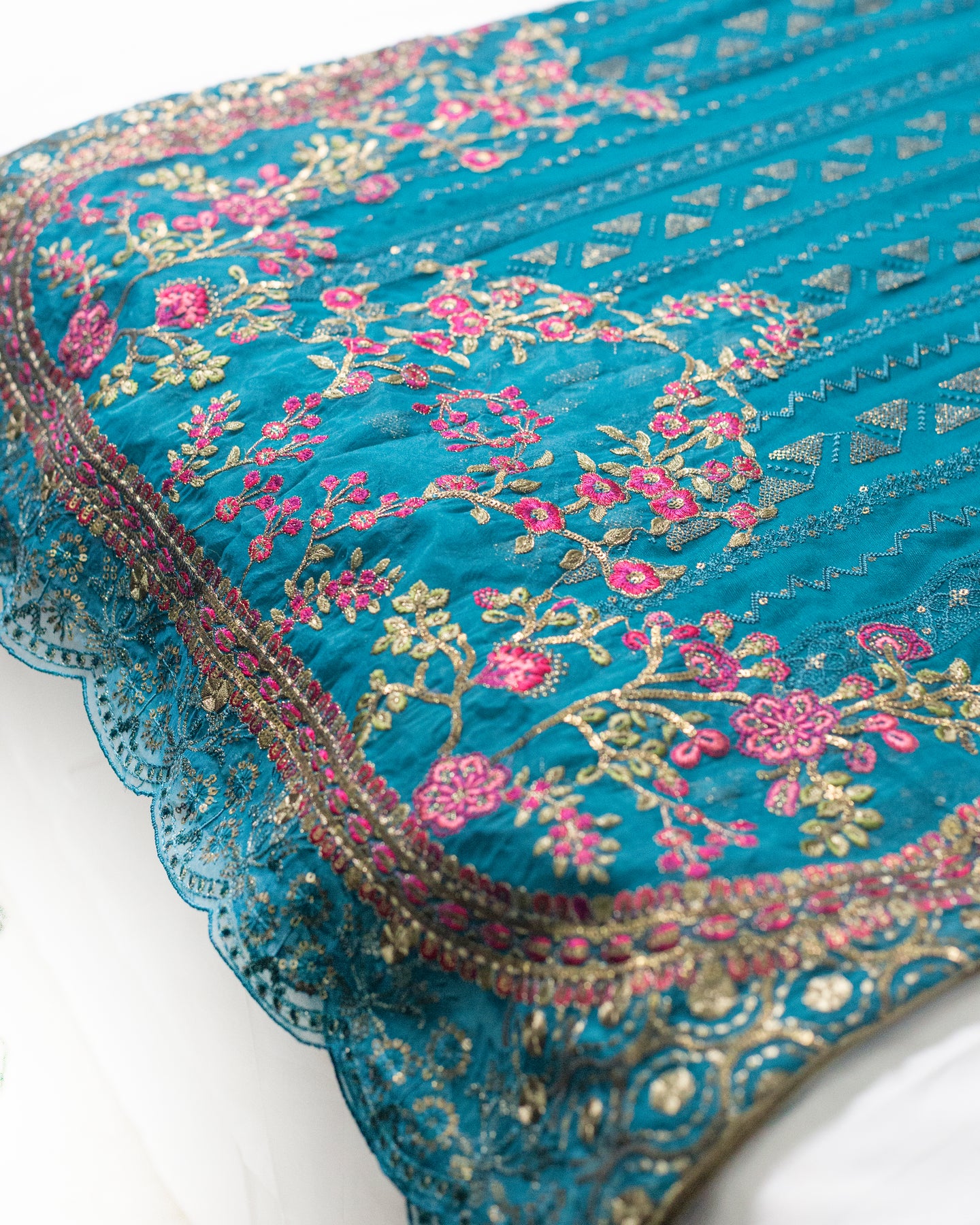 🧣 Embroidered Chiffon Dupatta – Light, graceful, and refined