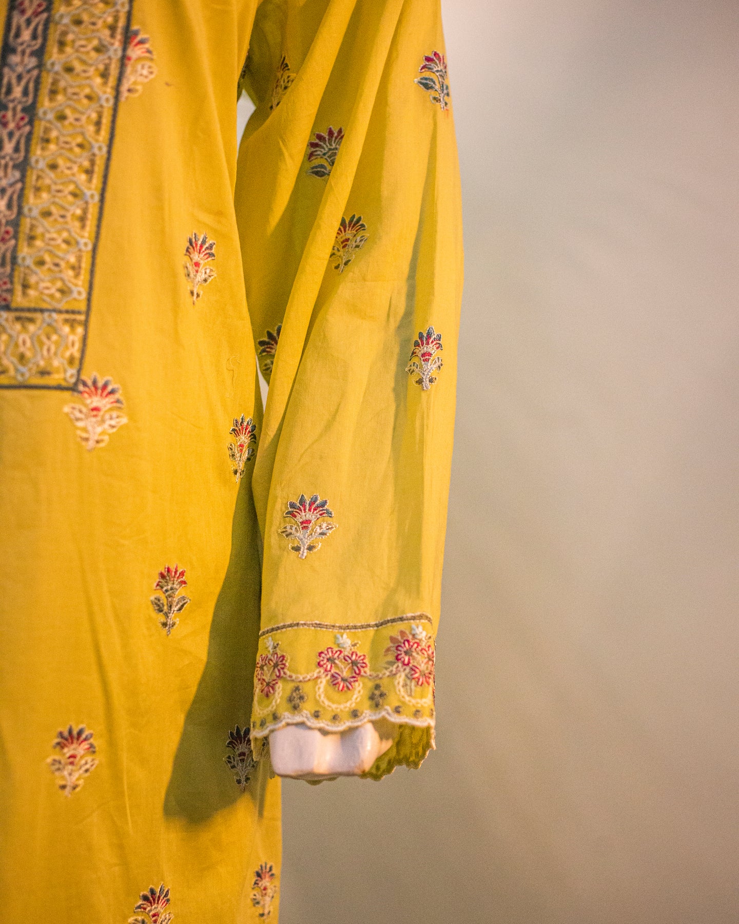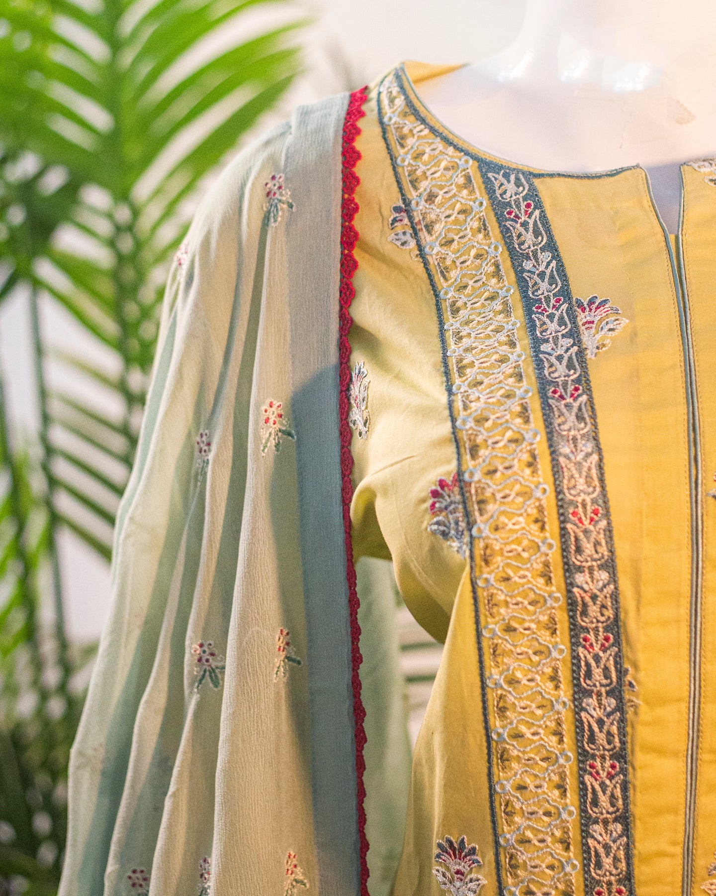• 🧣 Chiffon Dupatta – Embroidered with thread work & embossed print