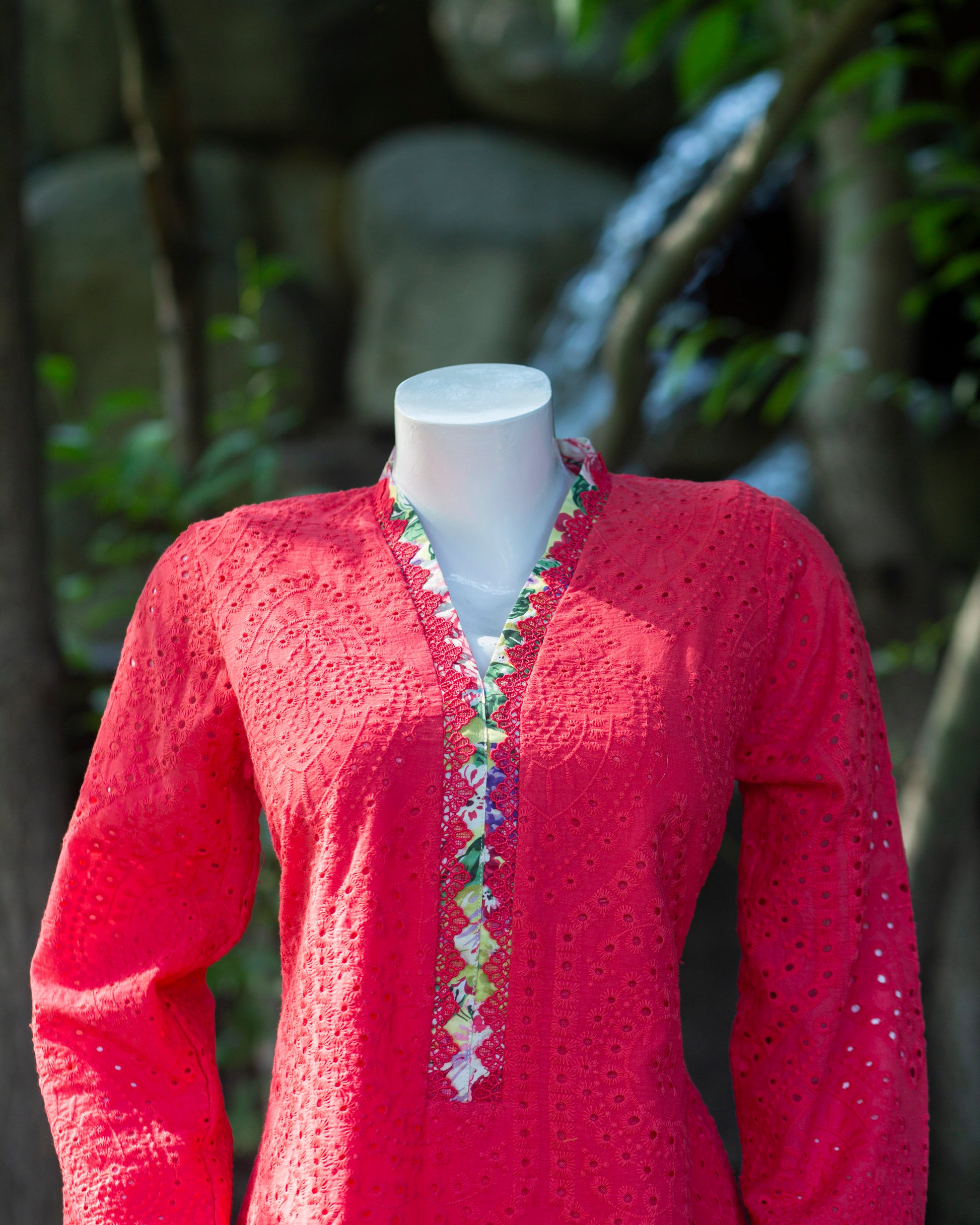 - 🧵 Shirt Fabric: Chikankari Lawn (With lace detailing)