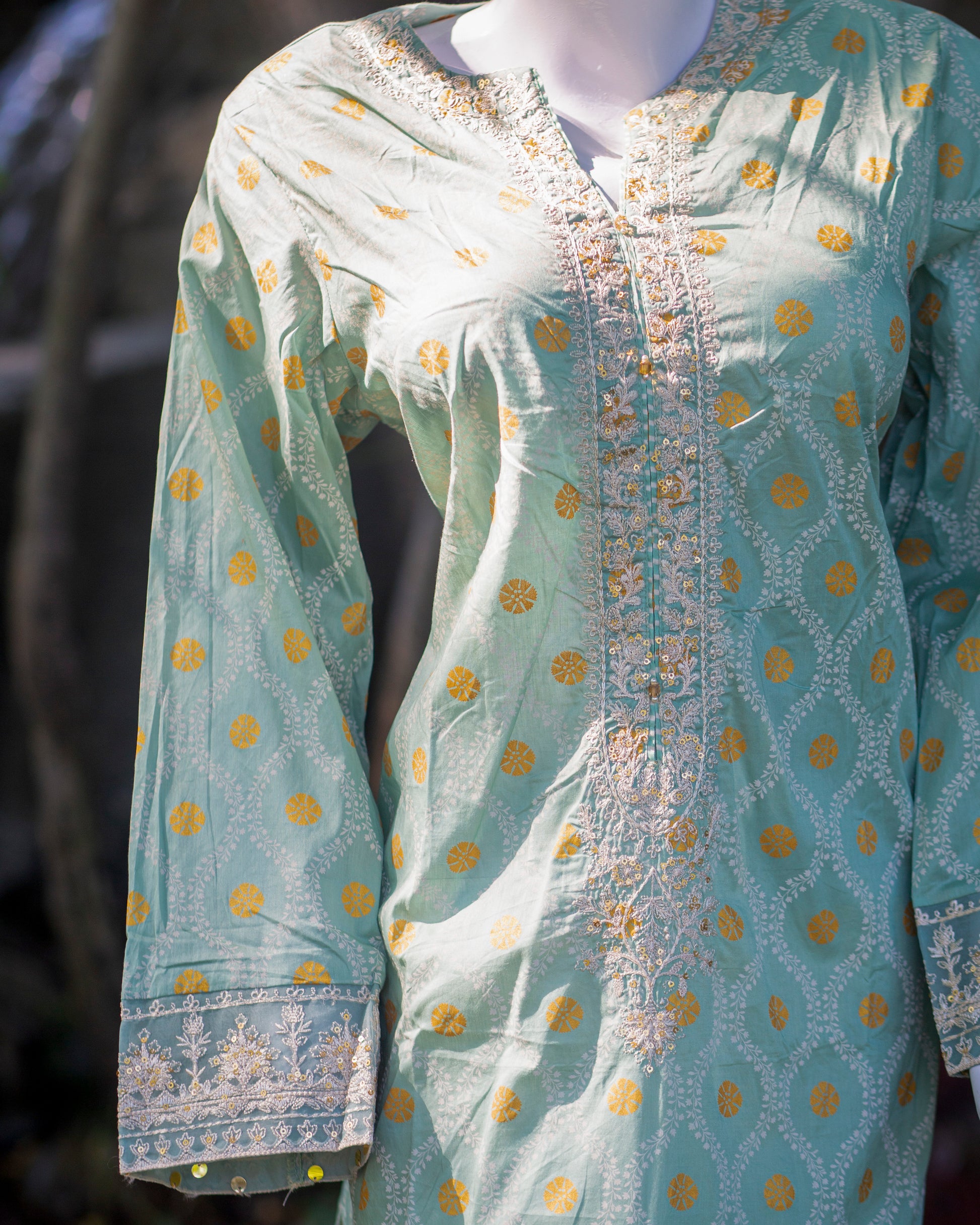 Bobrai Collection – Sapphire Lawn 2-Piece Embossed & Embroidered Set in Light Green
