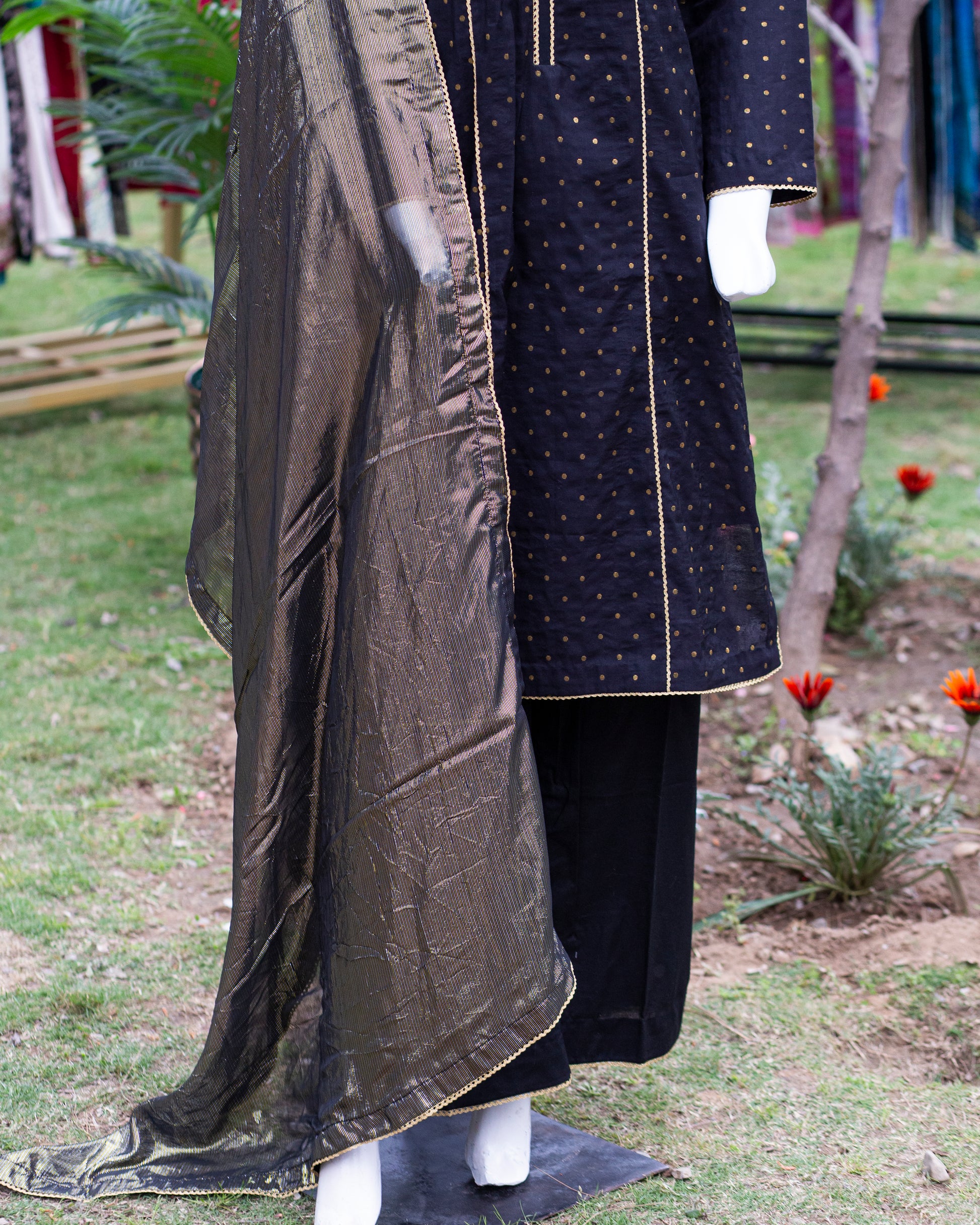 🖤 Jungle Theme Collection – Ethnic 3-Piece Jacquard Set (Black, Medium) - JT06