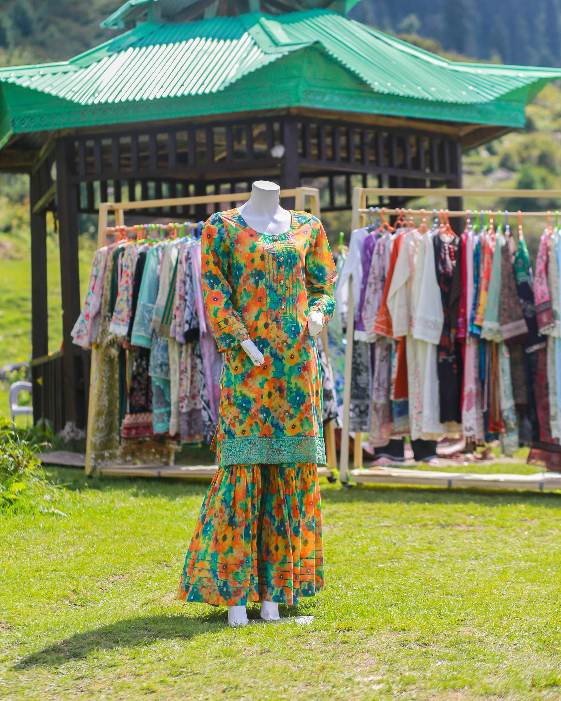 Laamana Collection – Ethnic Lawn 2-Piece Floral Ensemble (Small & Medium) - LE43