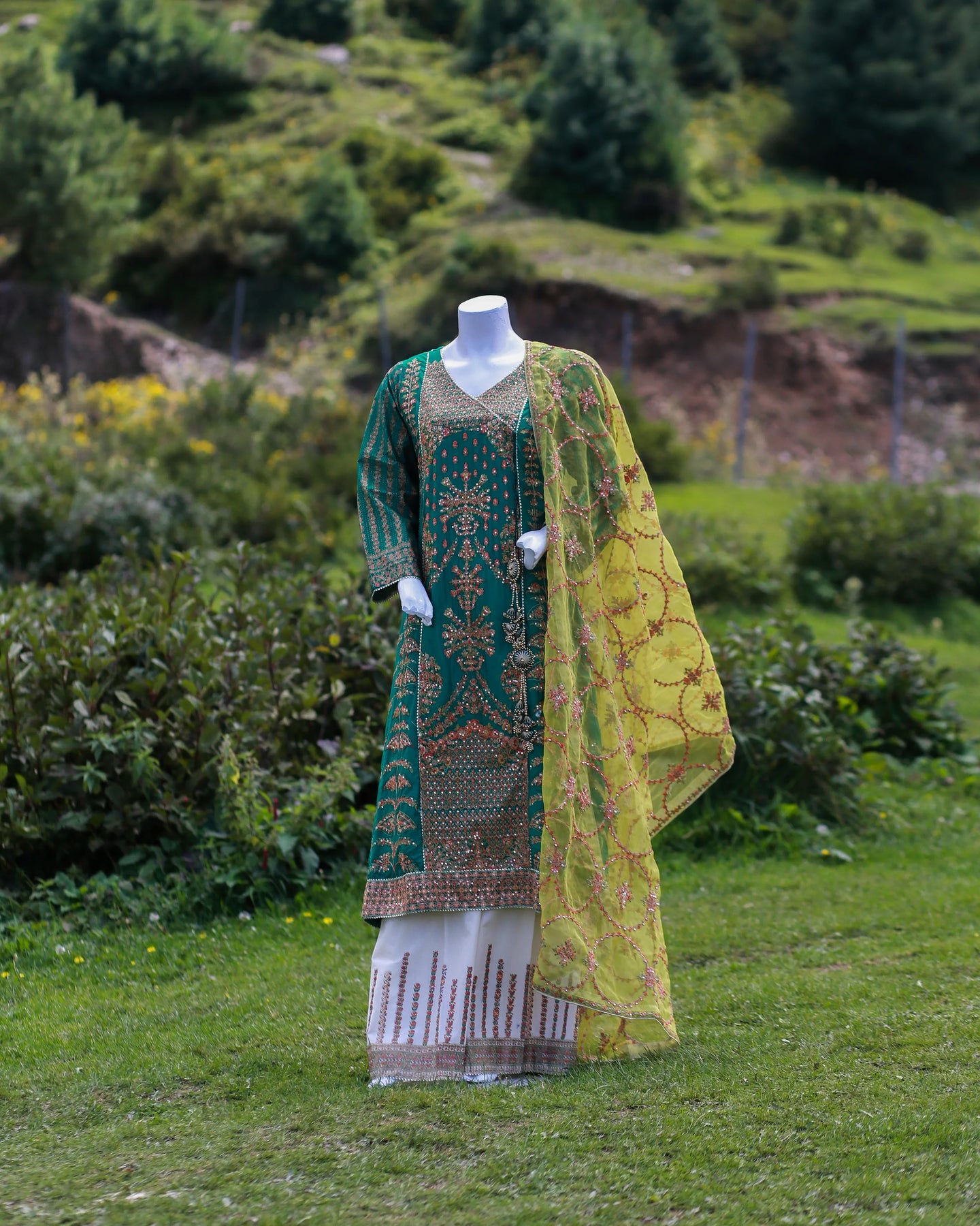 A celebration of luxury and elegance, this ensemble is perfect for festive occasions, formal summer events, or when you simply want to make a statement.