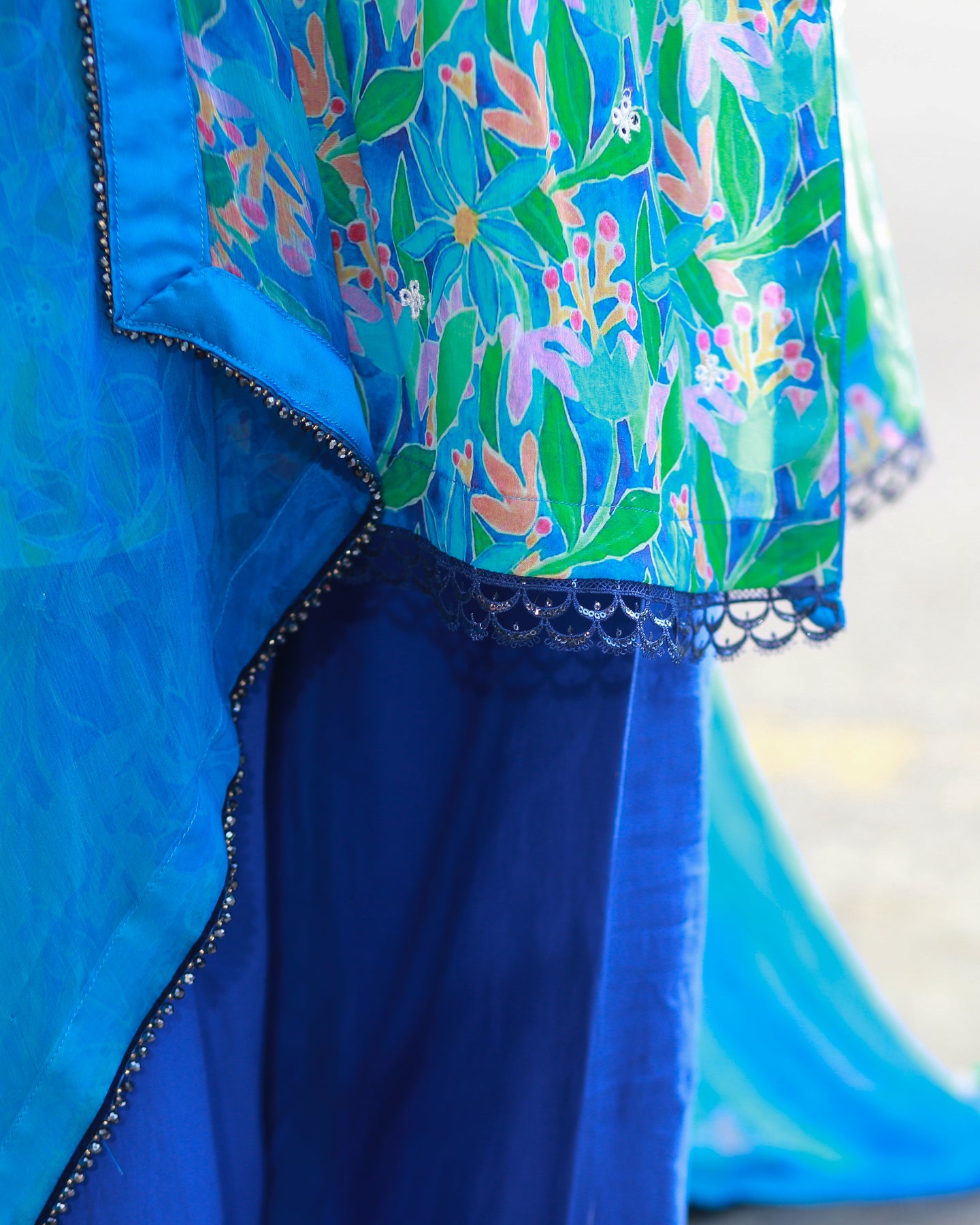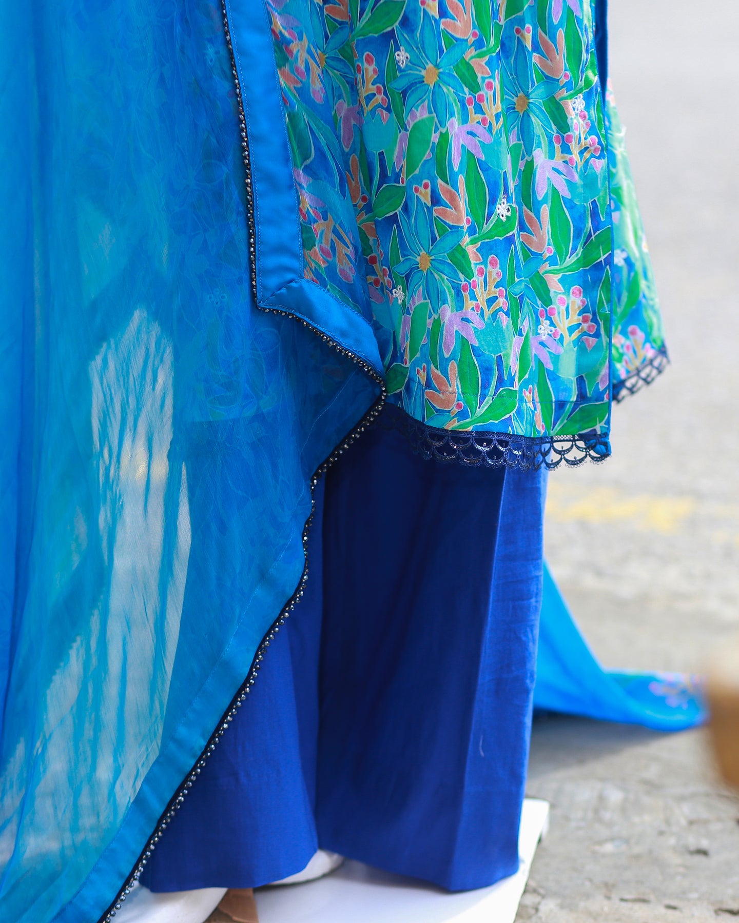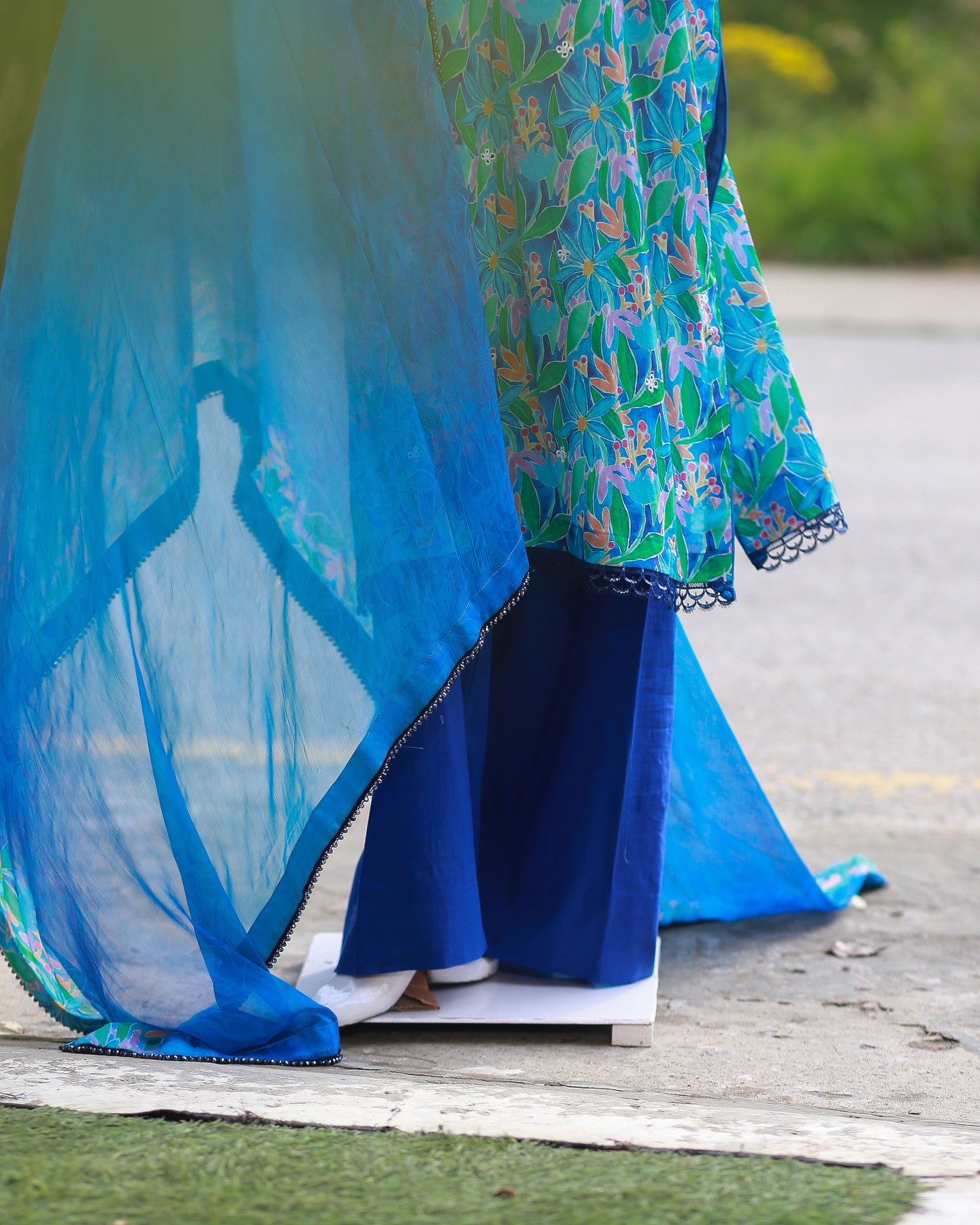 🧣 Dupatta Fabric: Chiffon (Printed with lace)