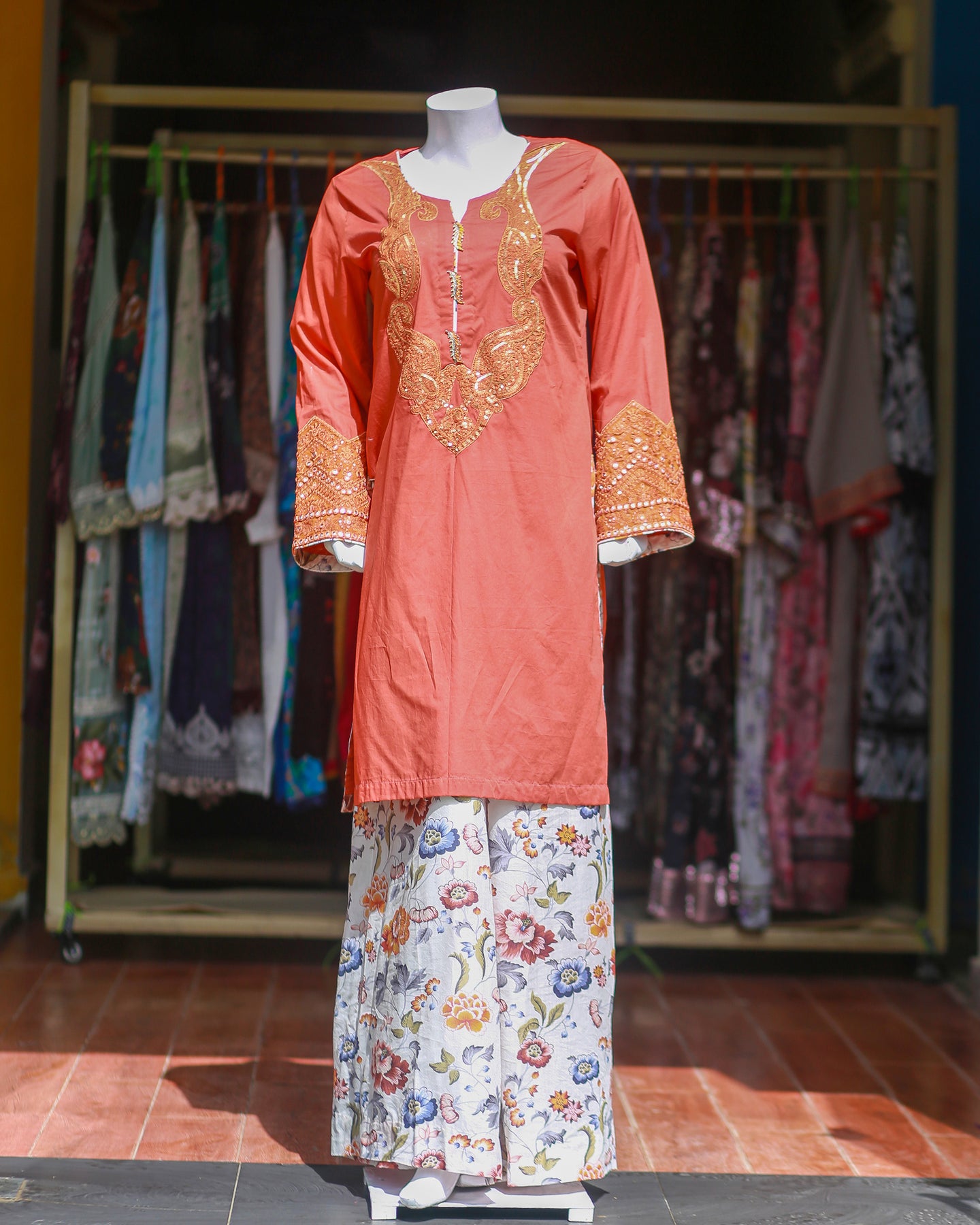 Paired with a printed lawn trouser, the outfit ensures comfort while maintaining a coordinated and graceful appearance.
