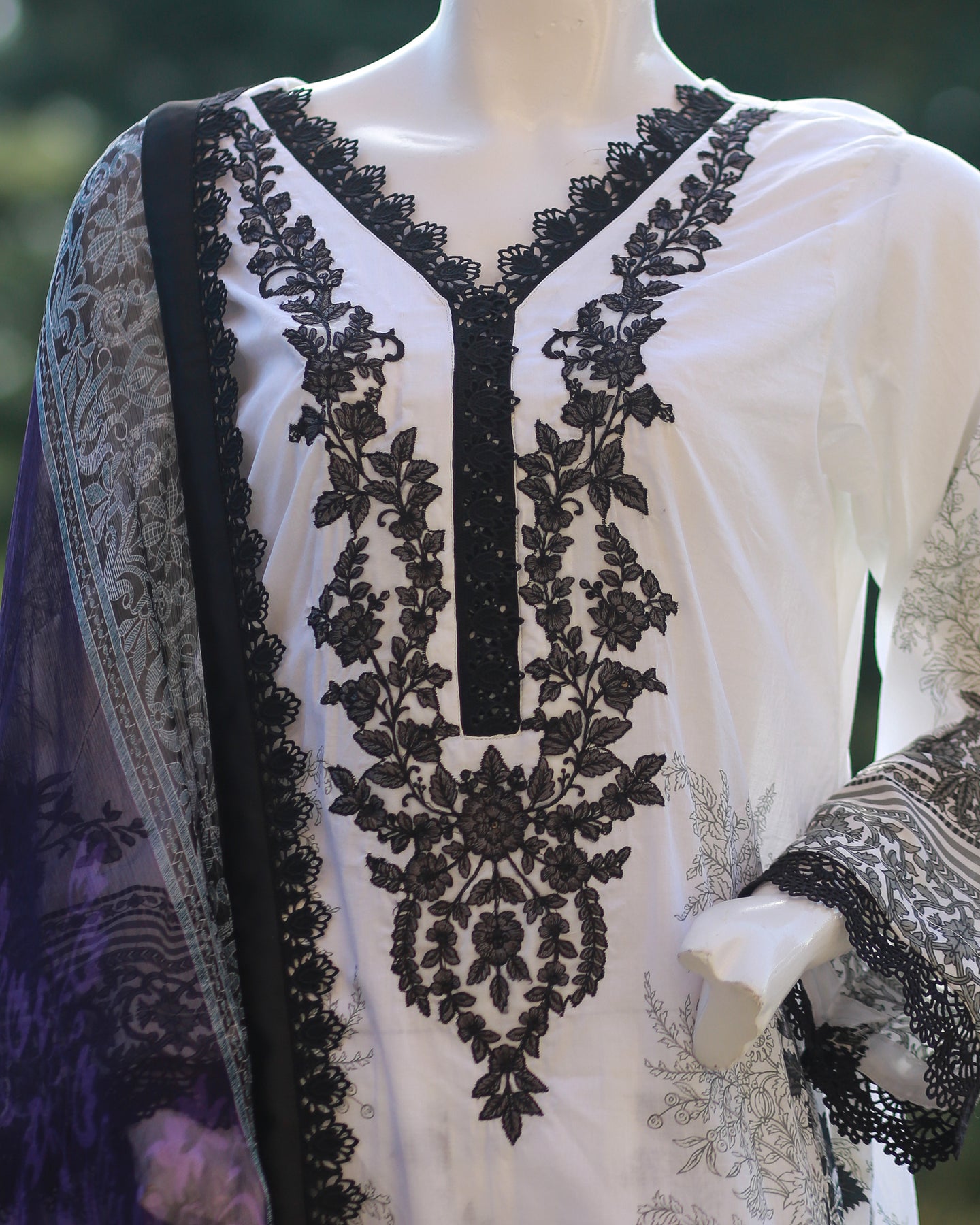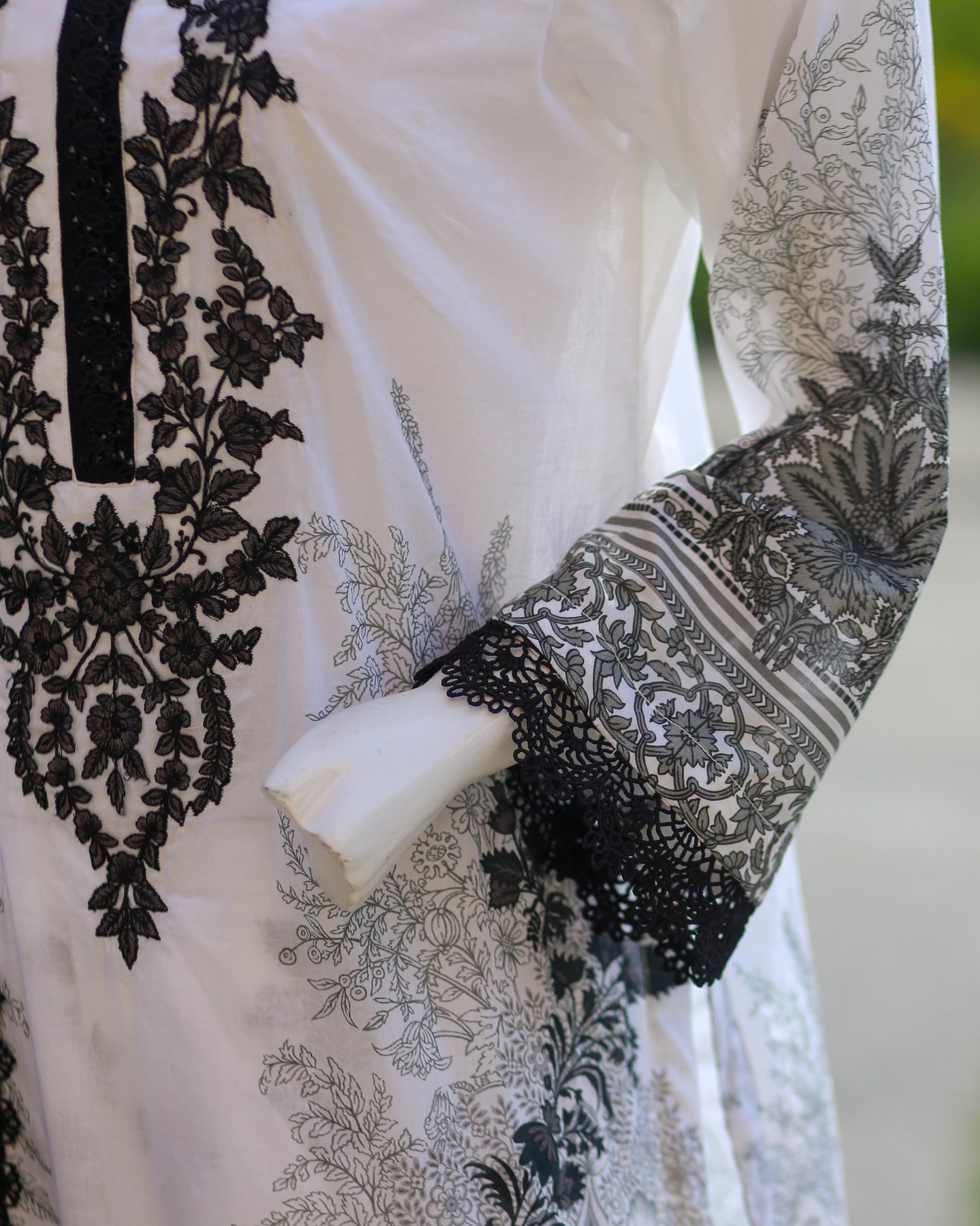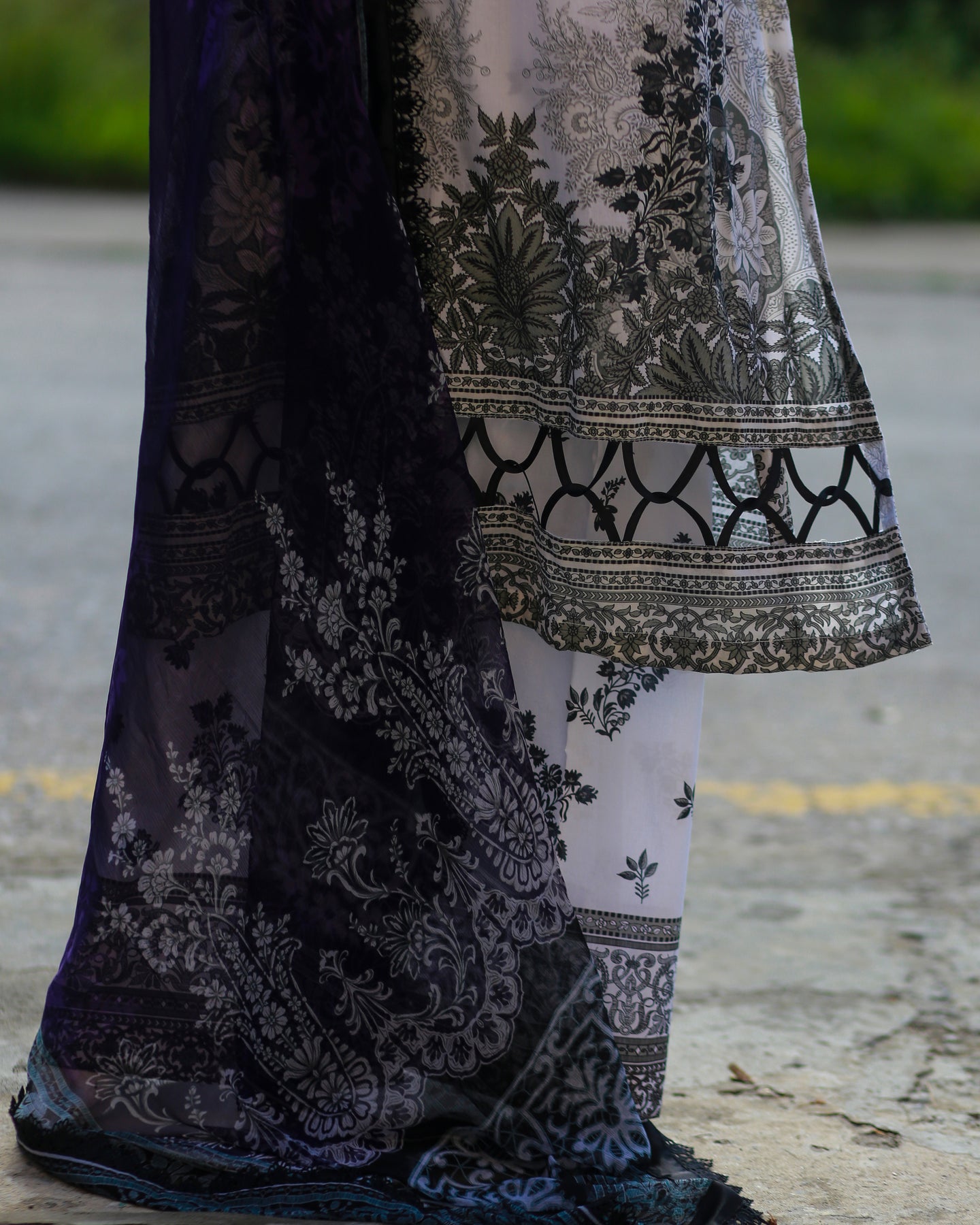 Paired with a printed cambric trouser for effortless style, the outfit is beautifully completed with a printed chiffon dupatta, finished with lace for a soft and feminine touch—perfect for festive gatherings and polished daytime wear.