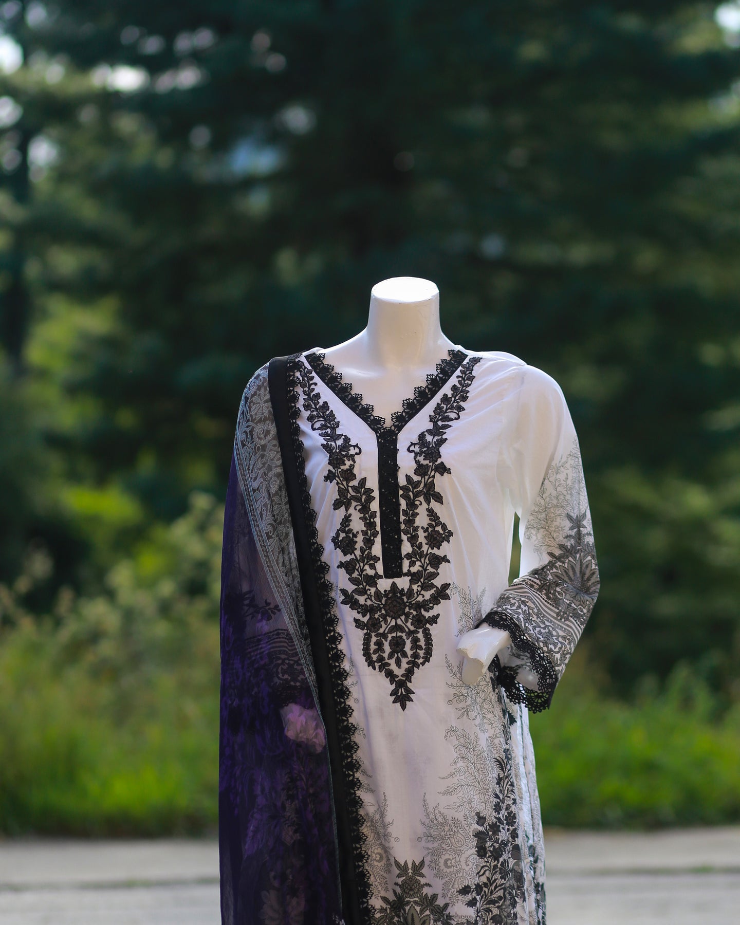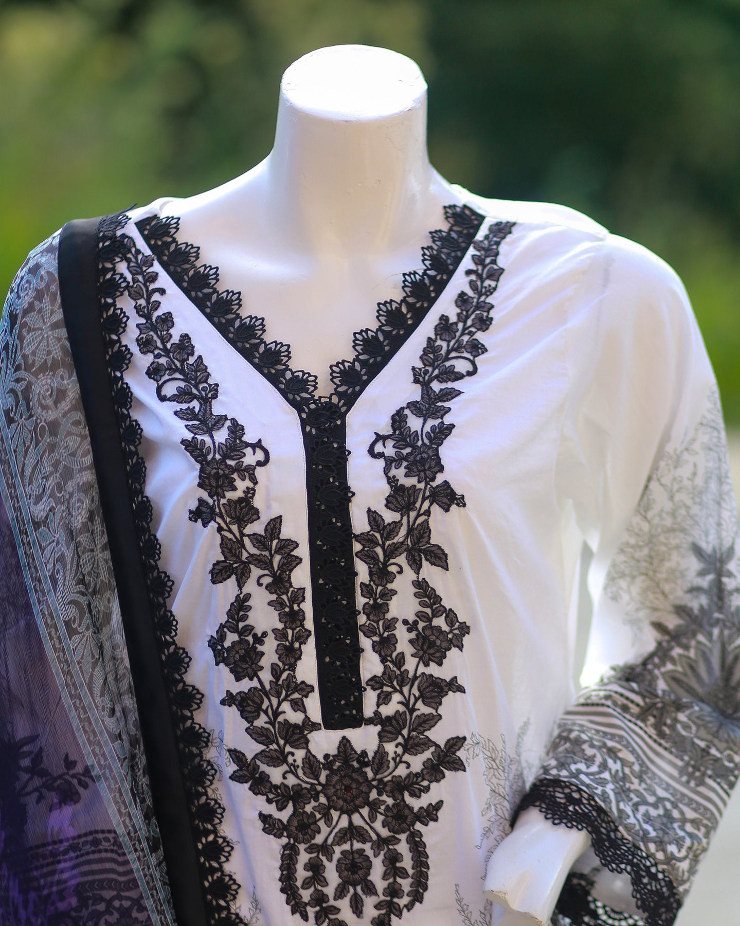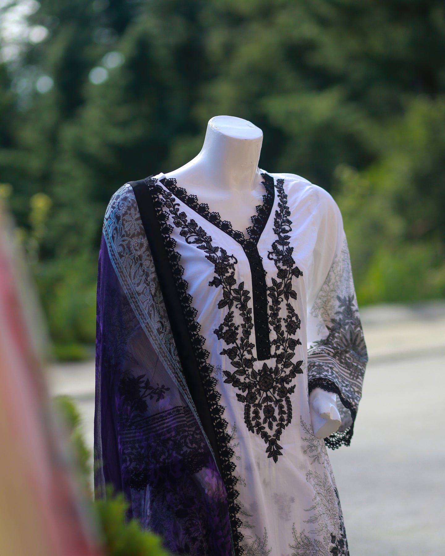 Paired with a printed cambric trouser for effortless style, the outfit is beautifully completed with a printed chiffon dupatta, finished with lace for a soft and feminine touch—perfect for festive gatherings and polished daytime wear.