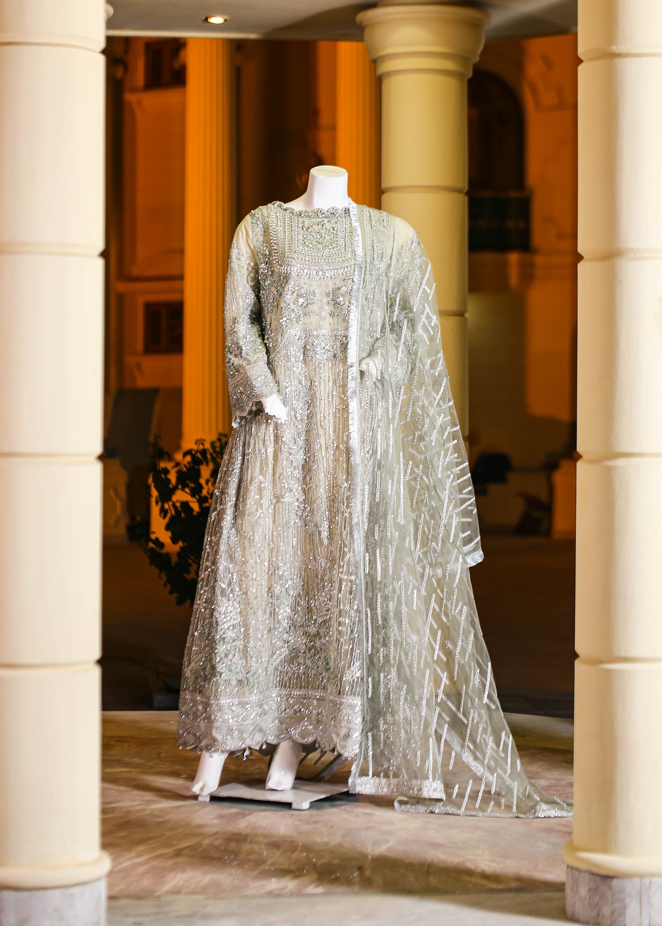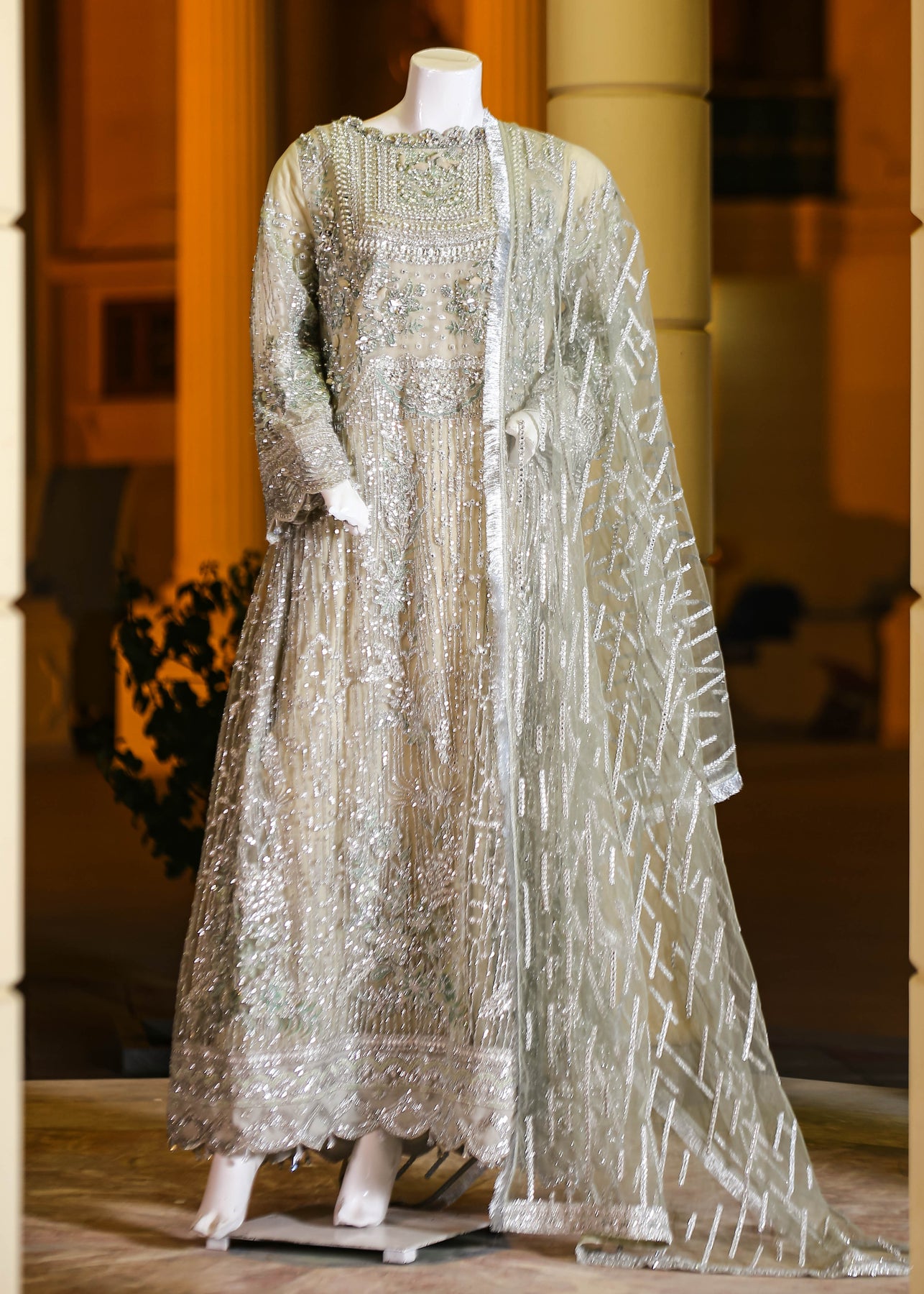 A luxurious and ornate ensemble—ideal for weddings, festive events, and grand evening gatherings.