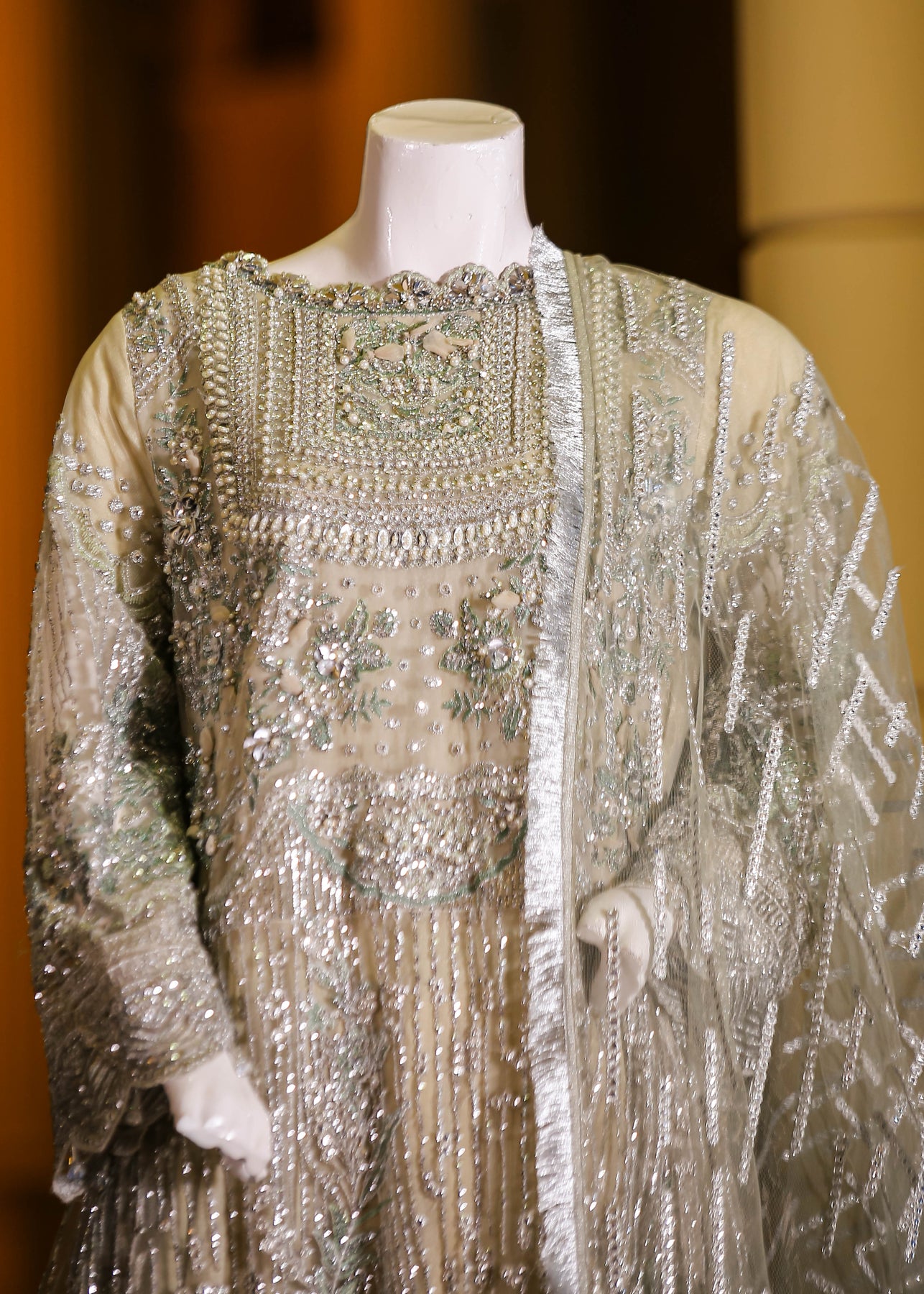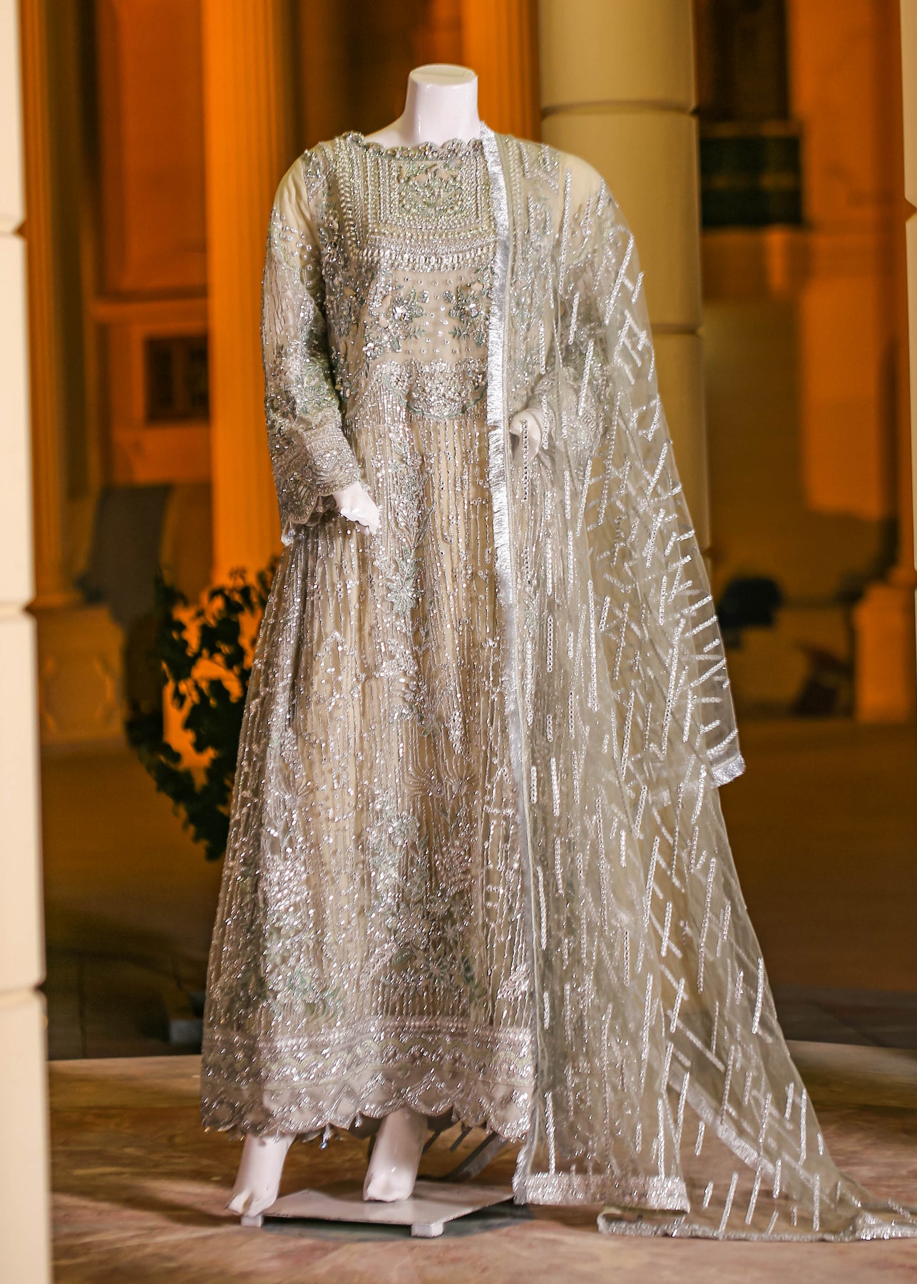🧣 Dupatta Fabric: Net (embroidered with thread, sequins & panni work)