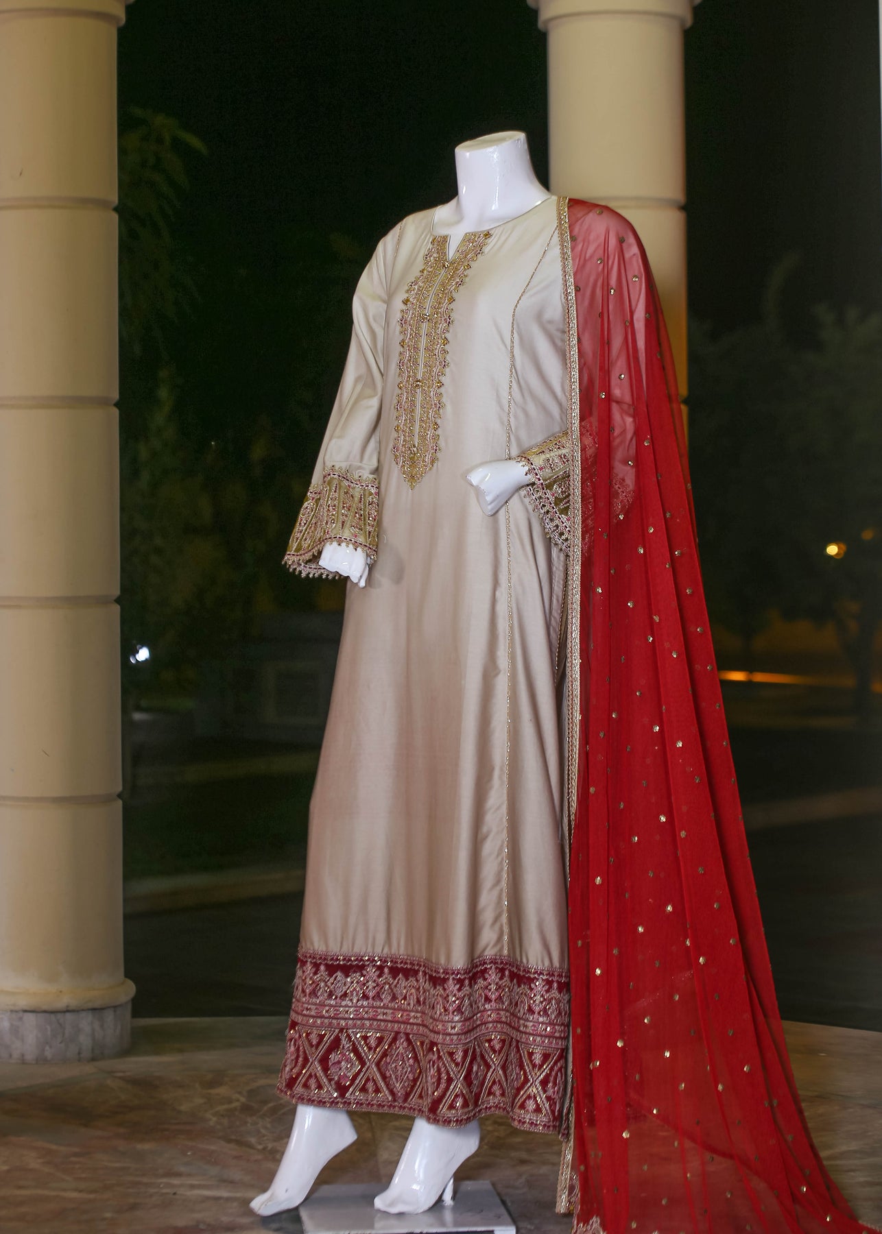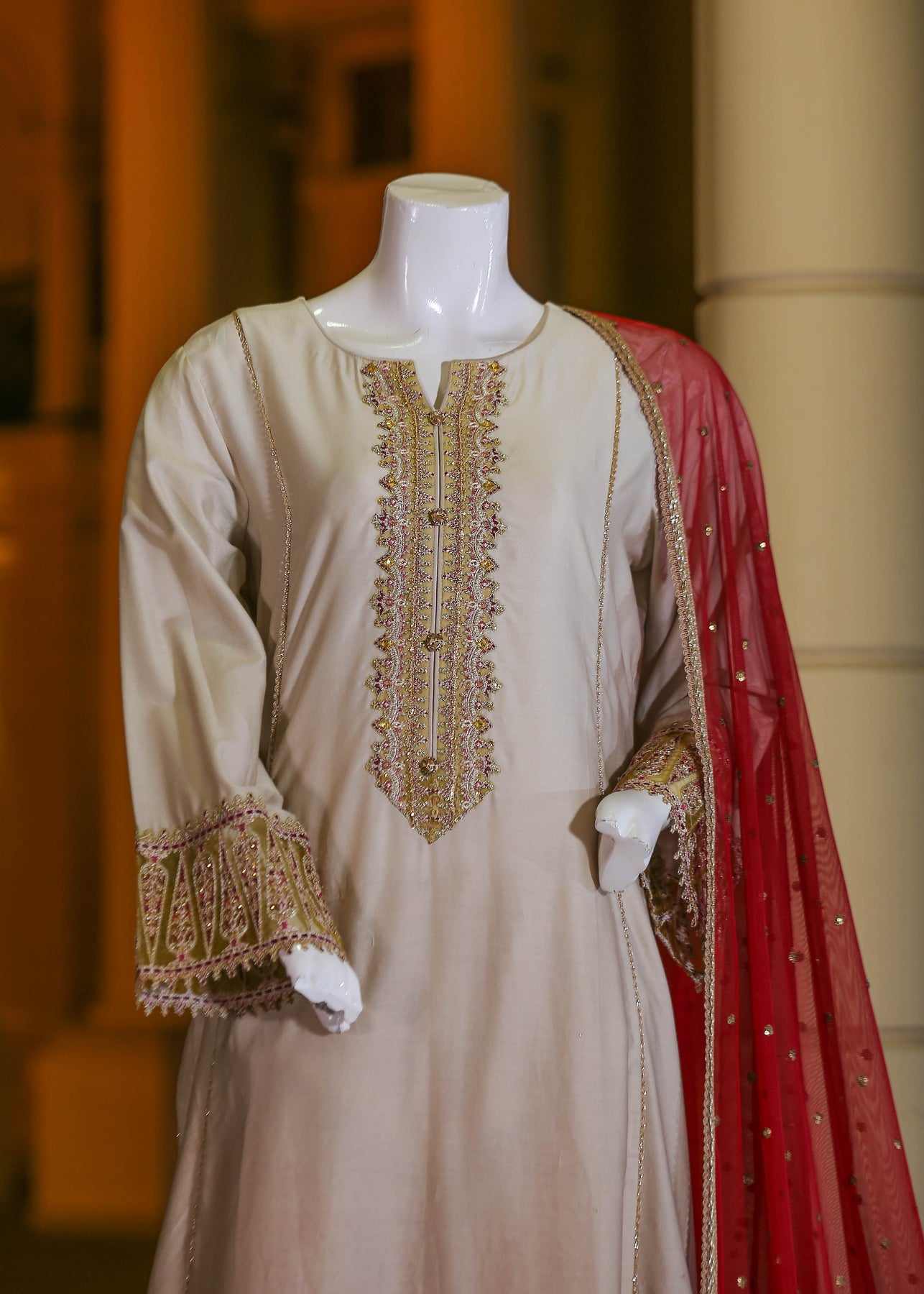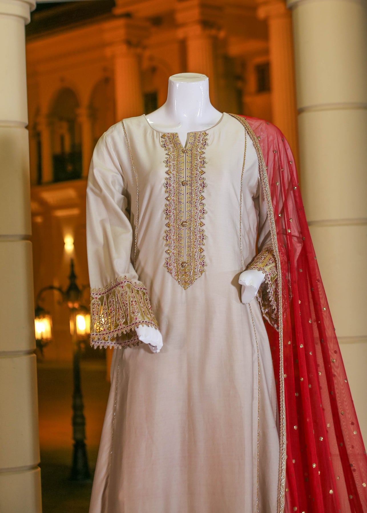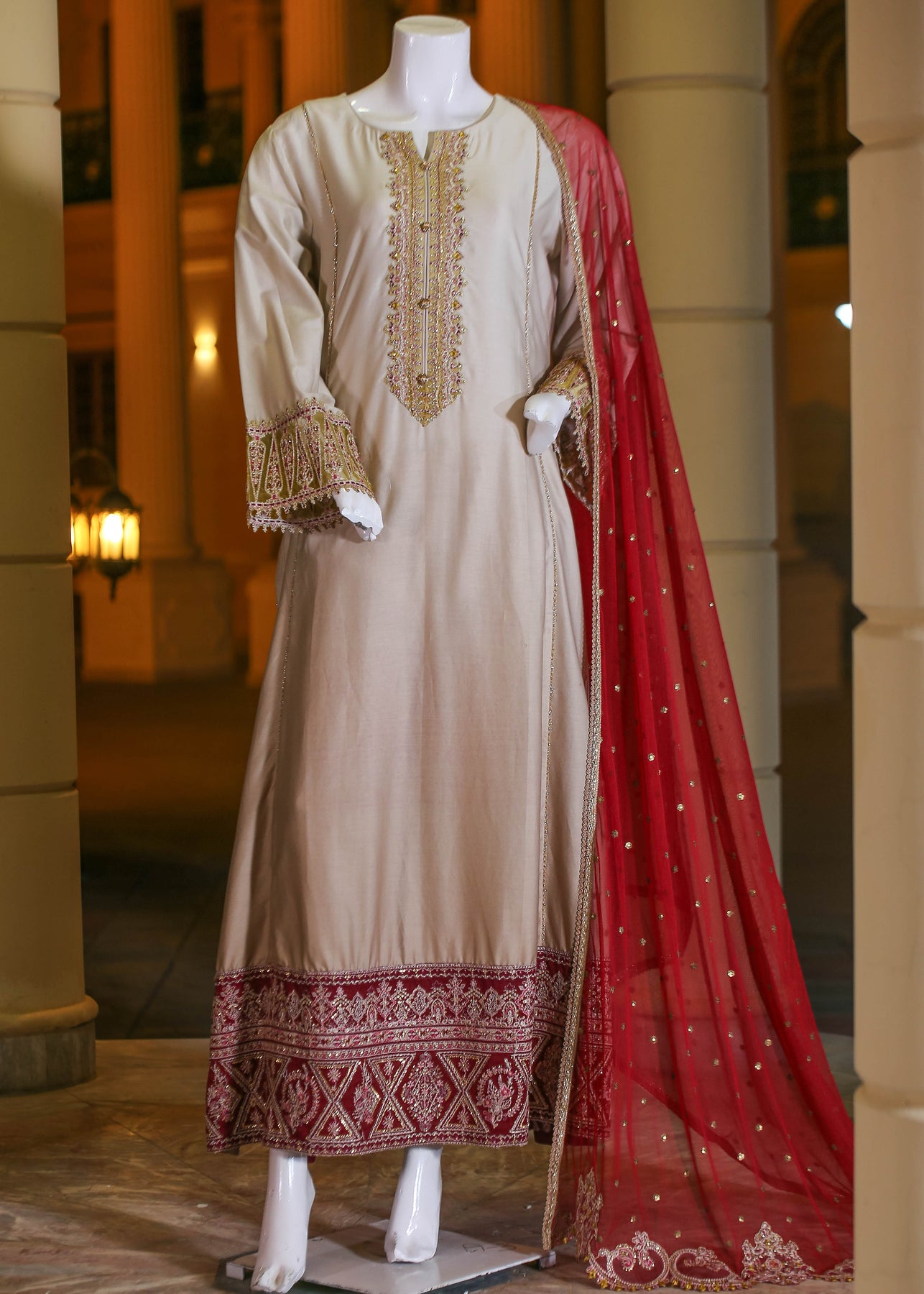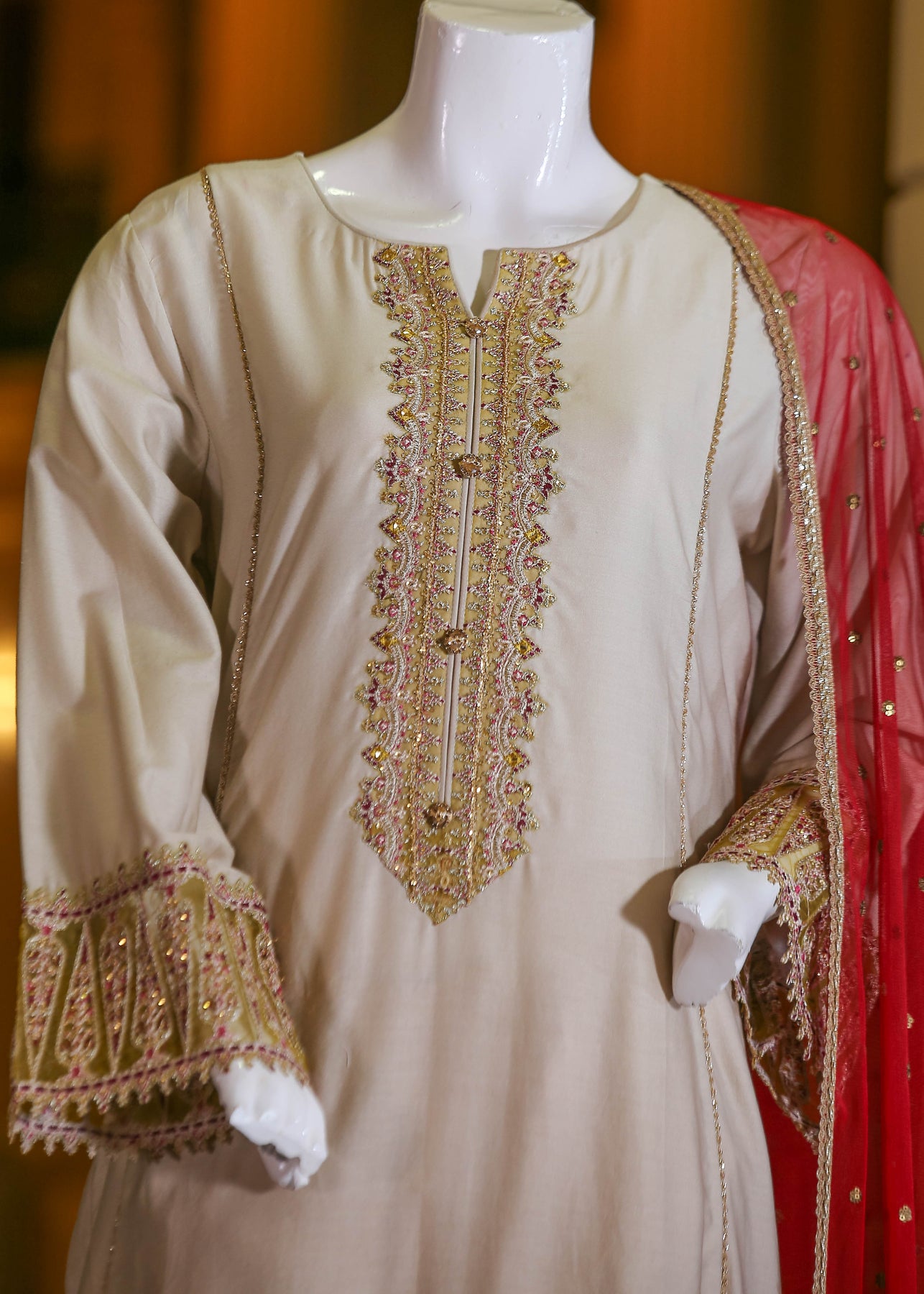 🧣 Dupatta Fabric: Soft Organza (embroidered with thread, sequins & pearl work)