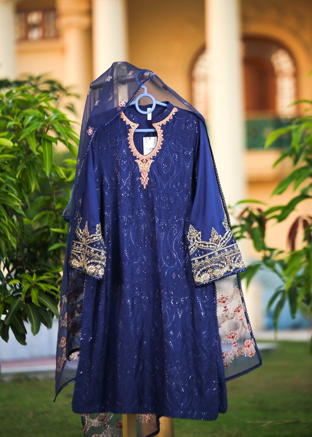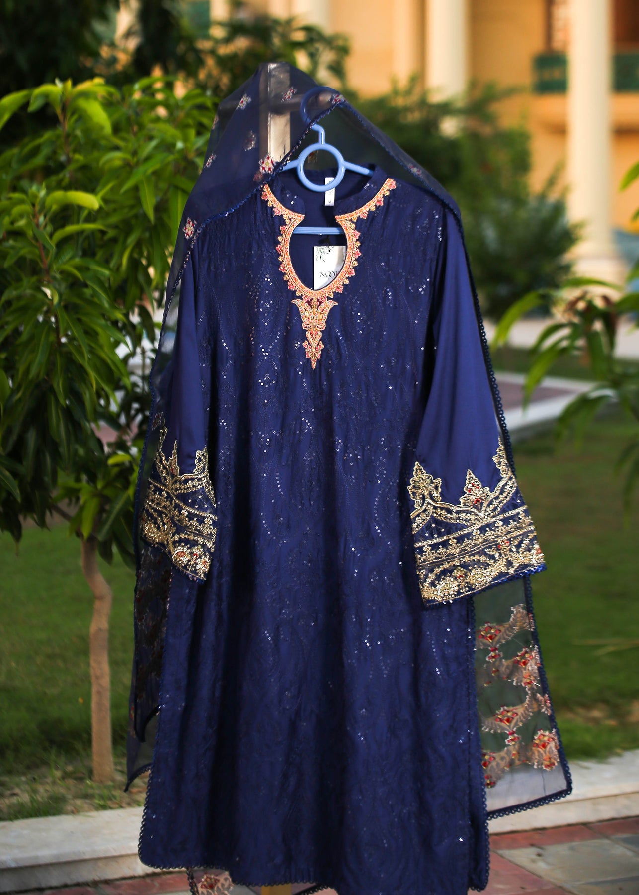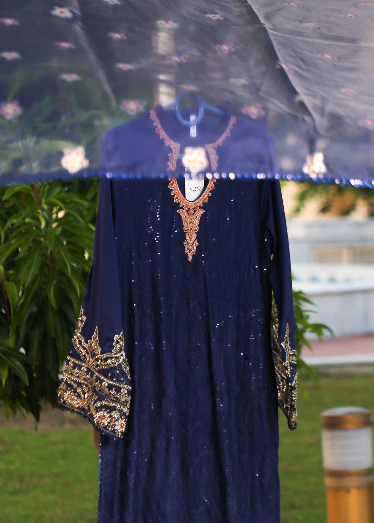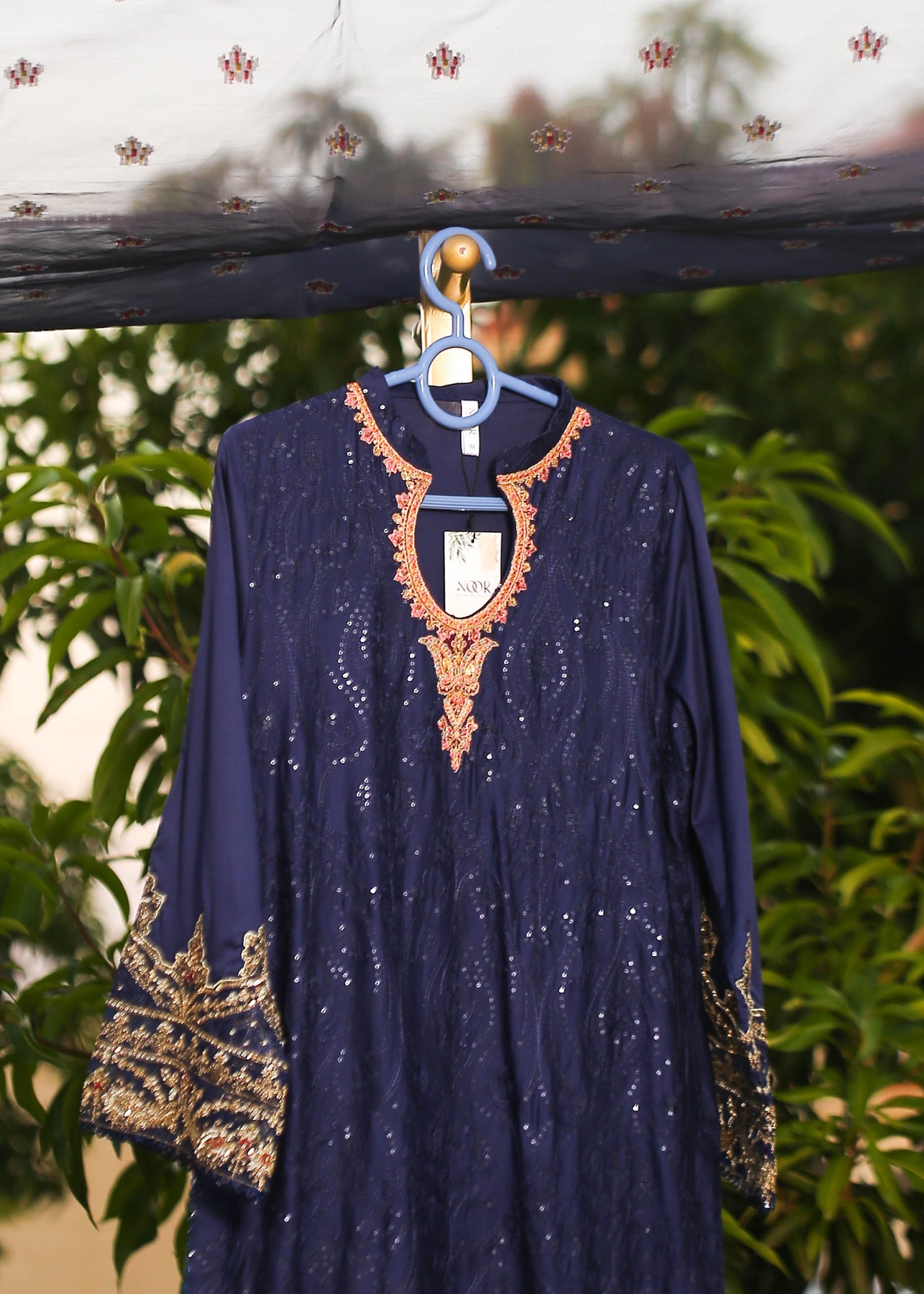 🧵 Shirt Fabric: Sateen (fully embroidered with thread, sequence & pearl work)