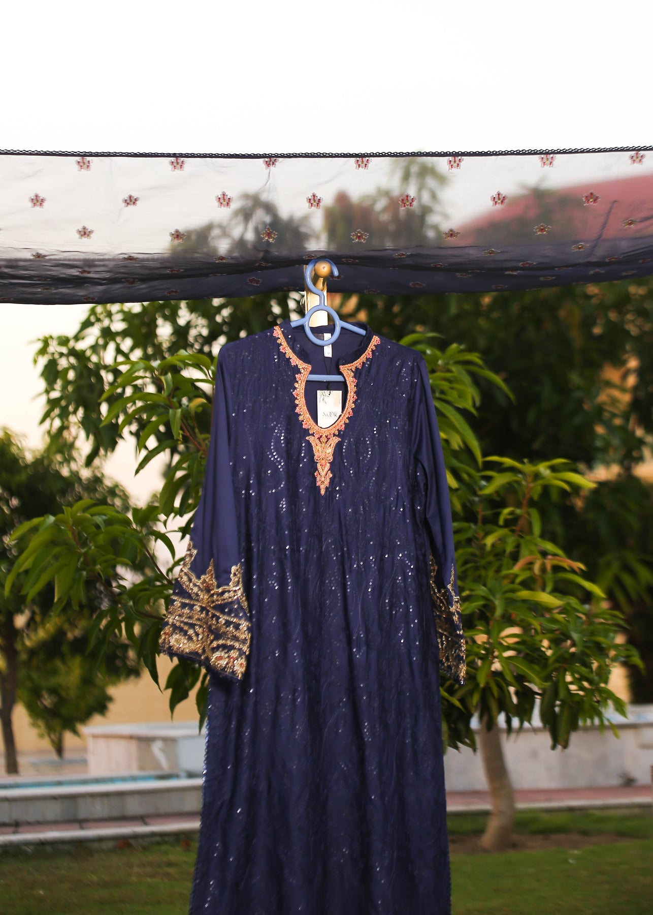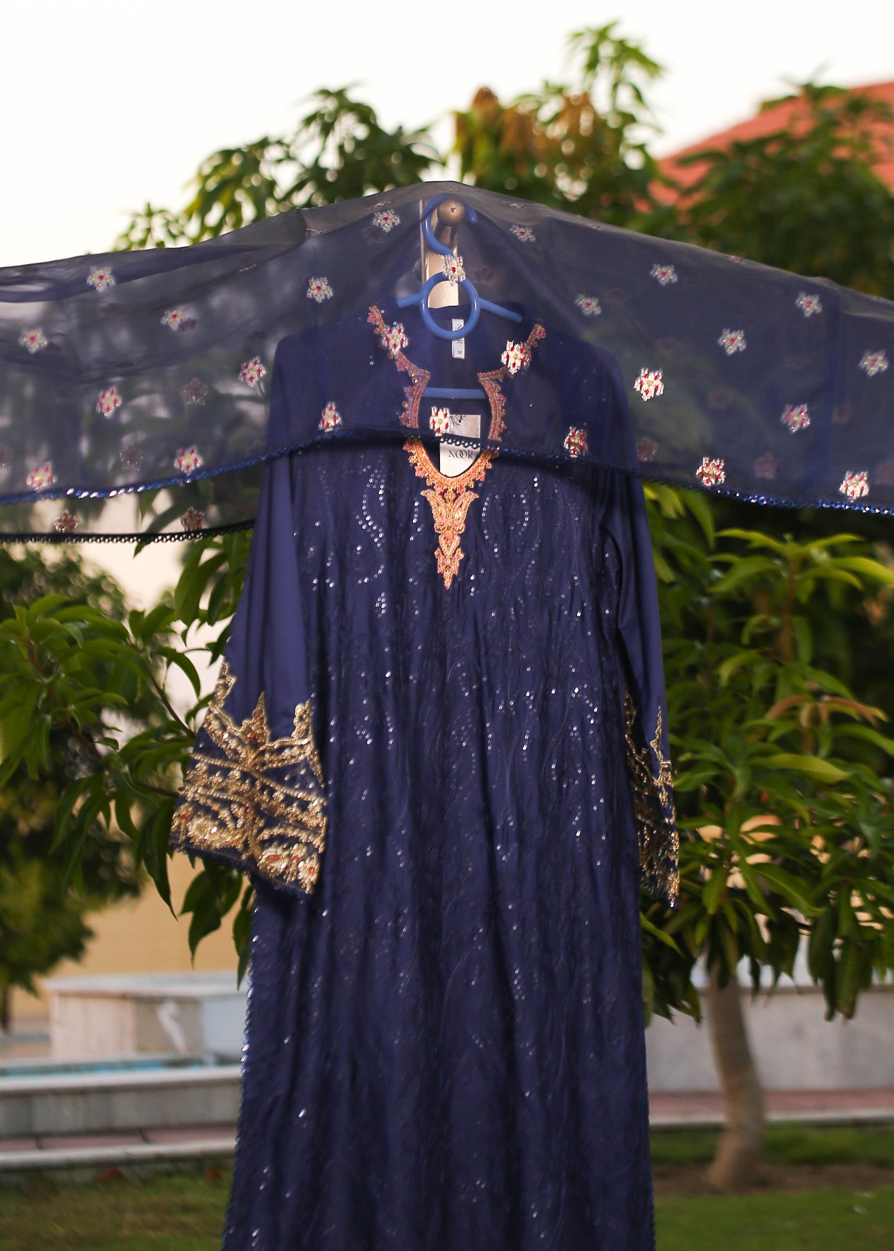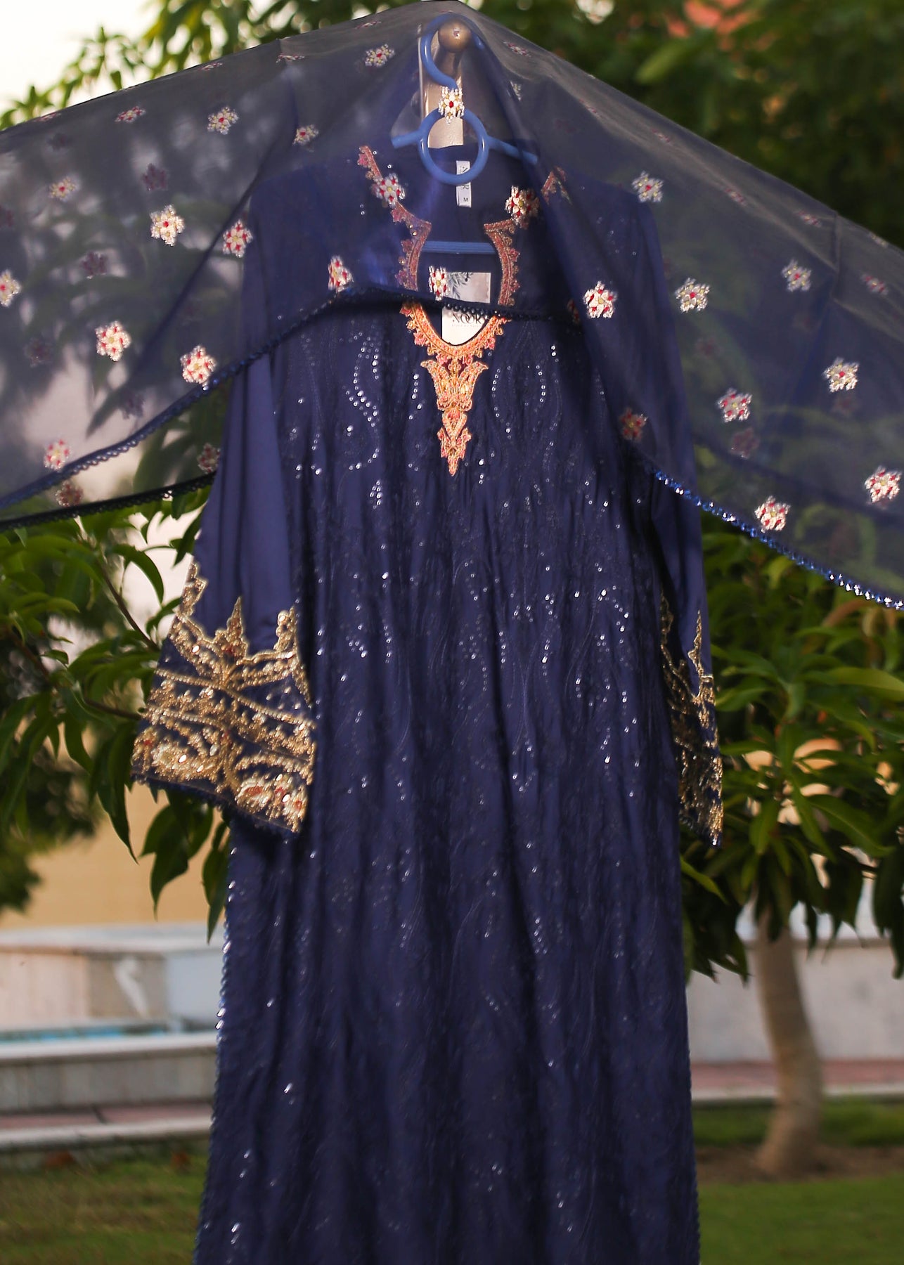 🧵 Shirt Fabric: Sateen (fully embroidered with thread, sequence & pearl work)