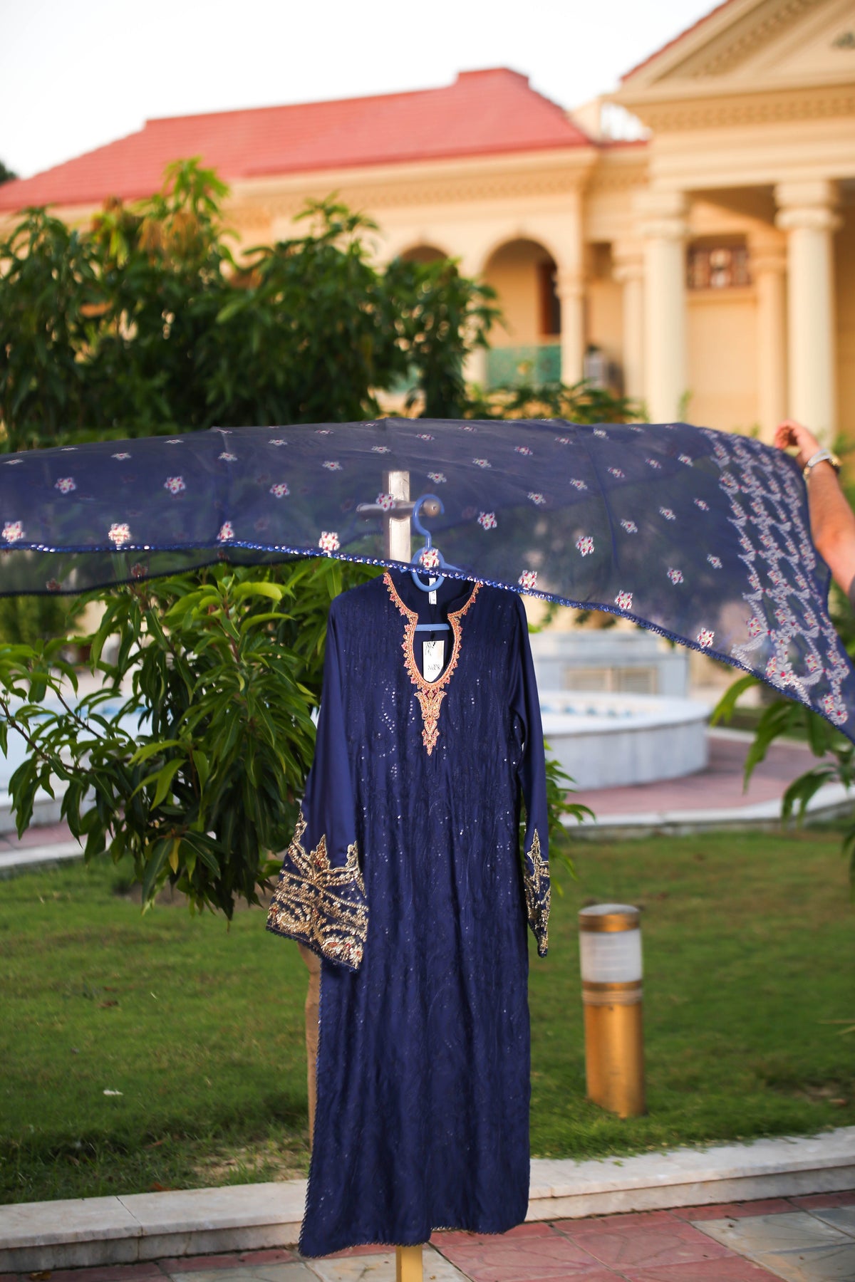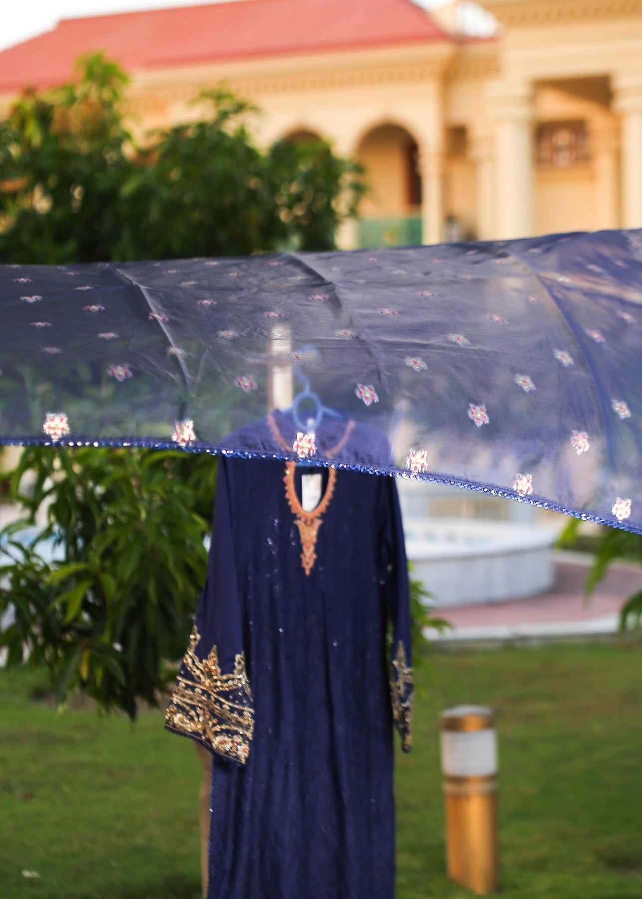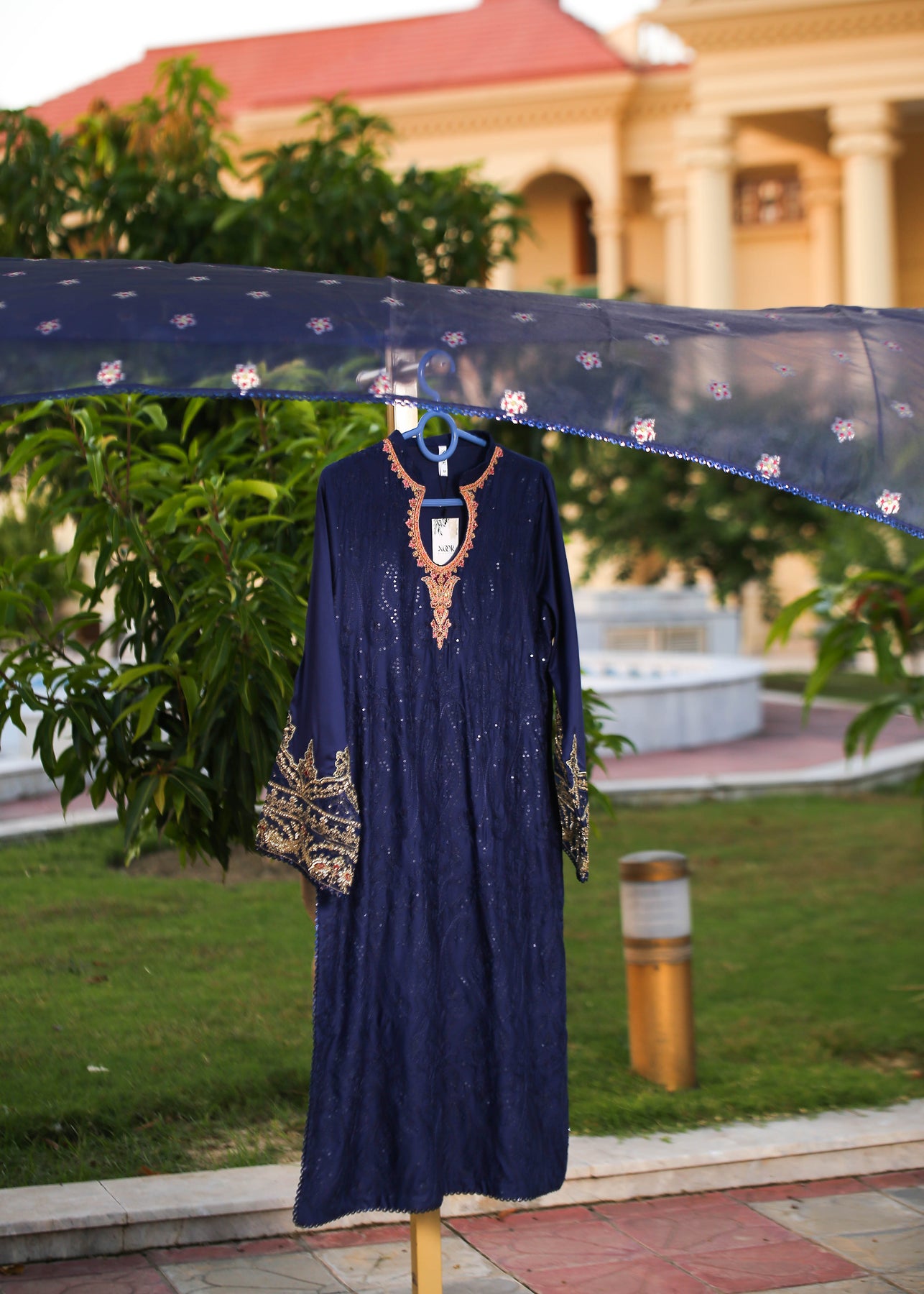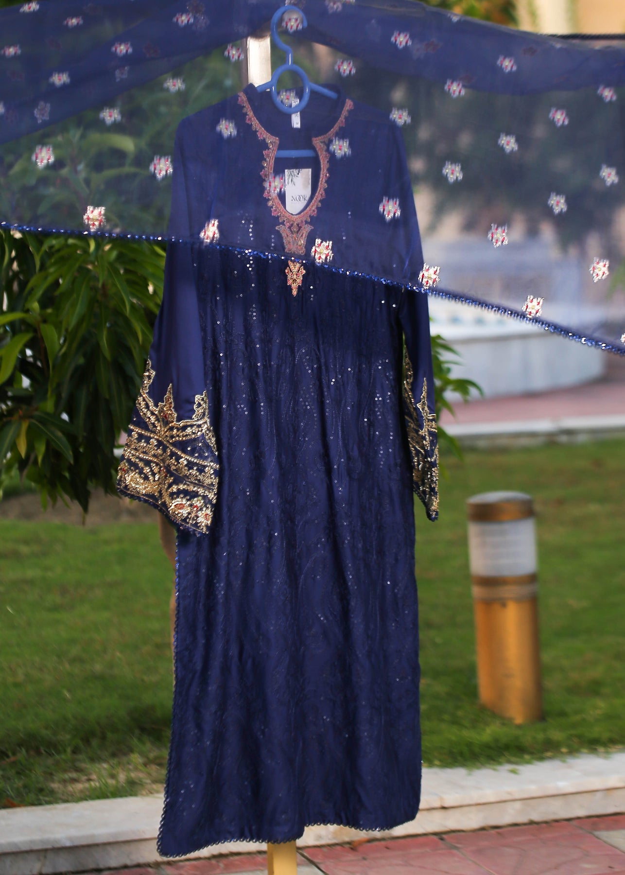 🧵 Shirt Fabric: Sateen (fully embroidered with thread, sequence & pearl work)