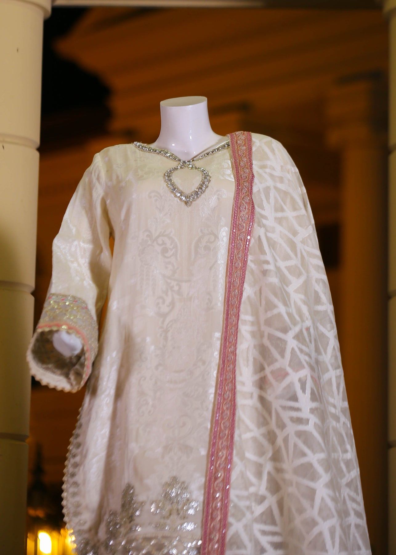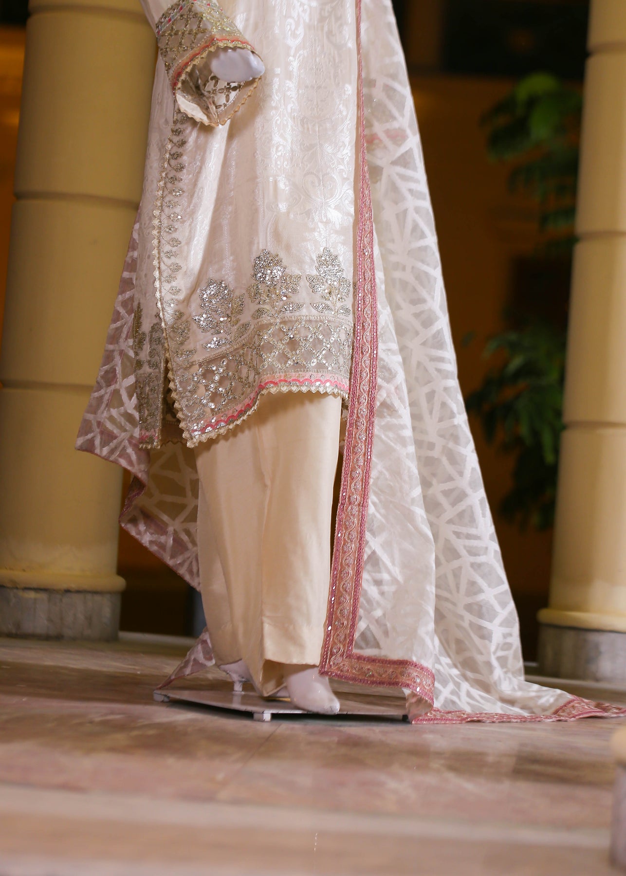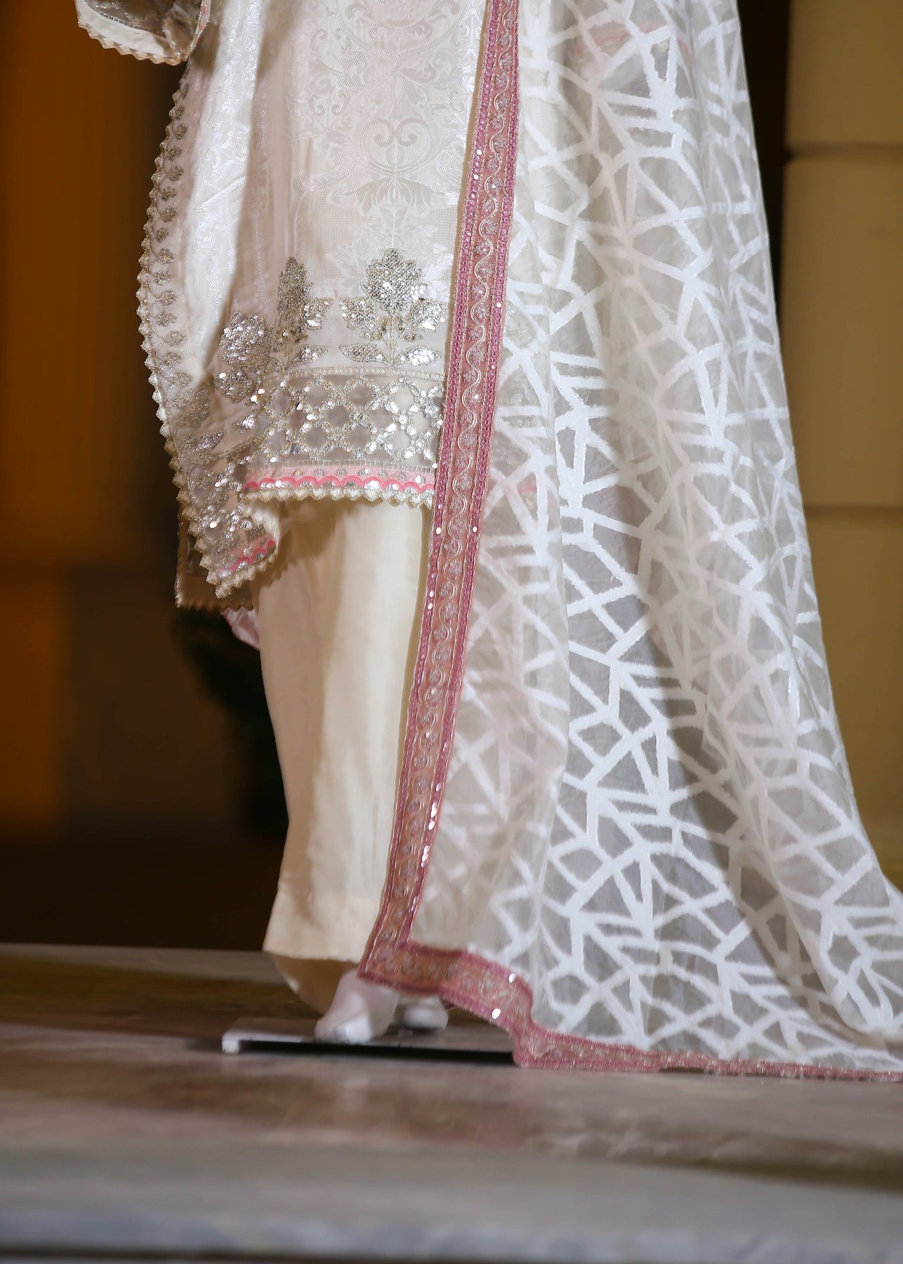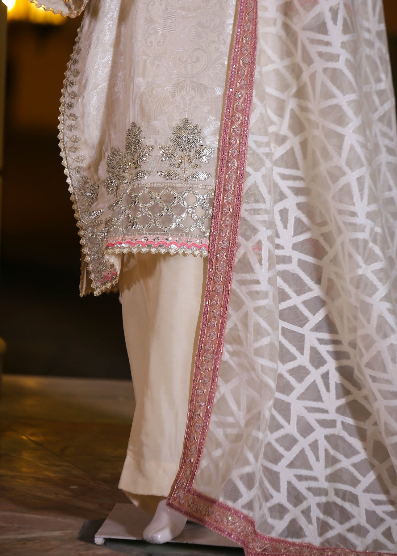 🧵 Shirt Fabric: Silk Jacquard (embroidered with thread, sequence, pearl & stone hand embellishment)