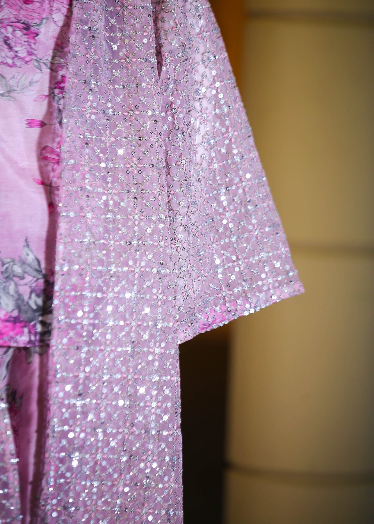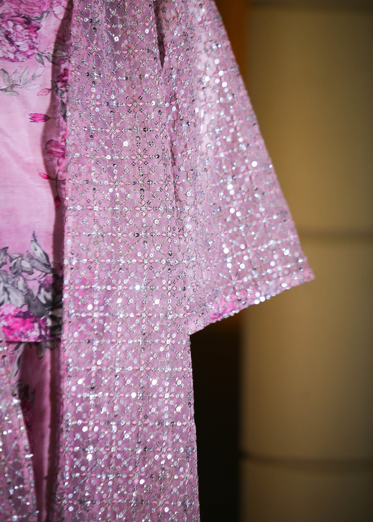 🧣 Gown Fabric: Organza (thread and sequins work)
