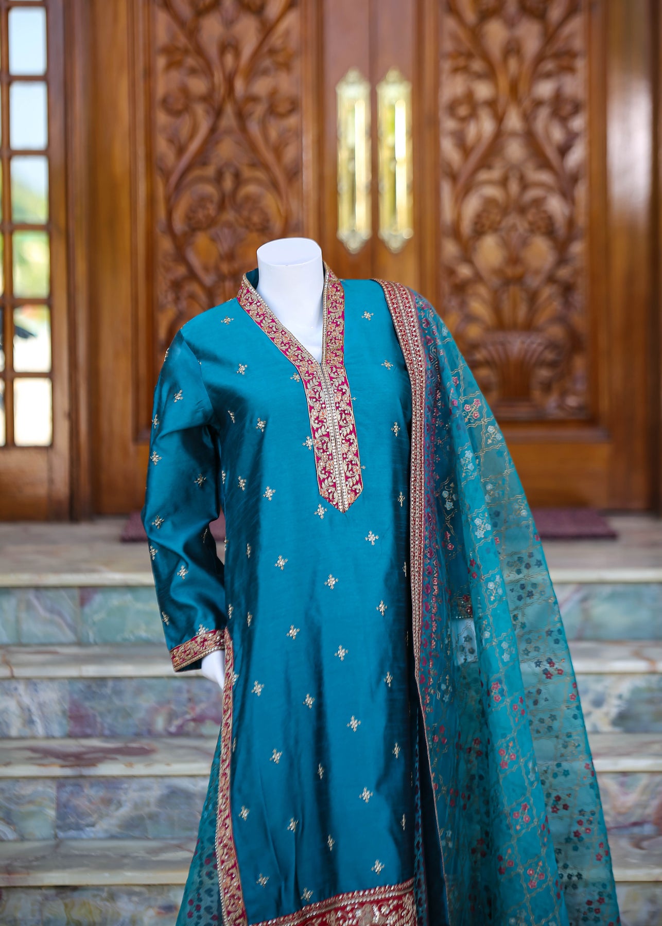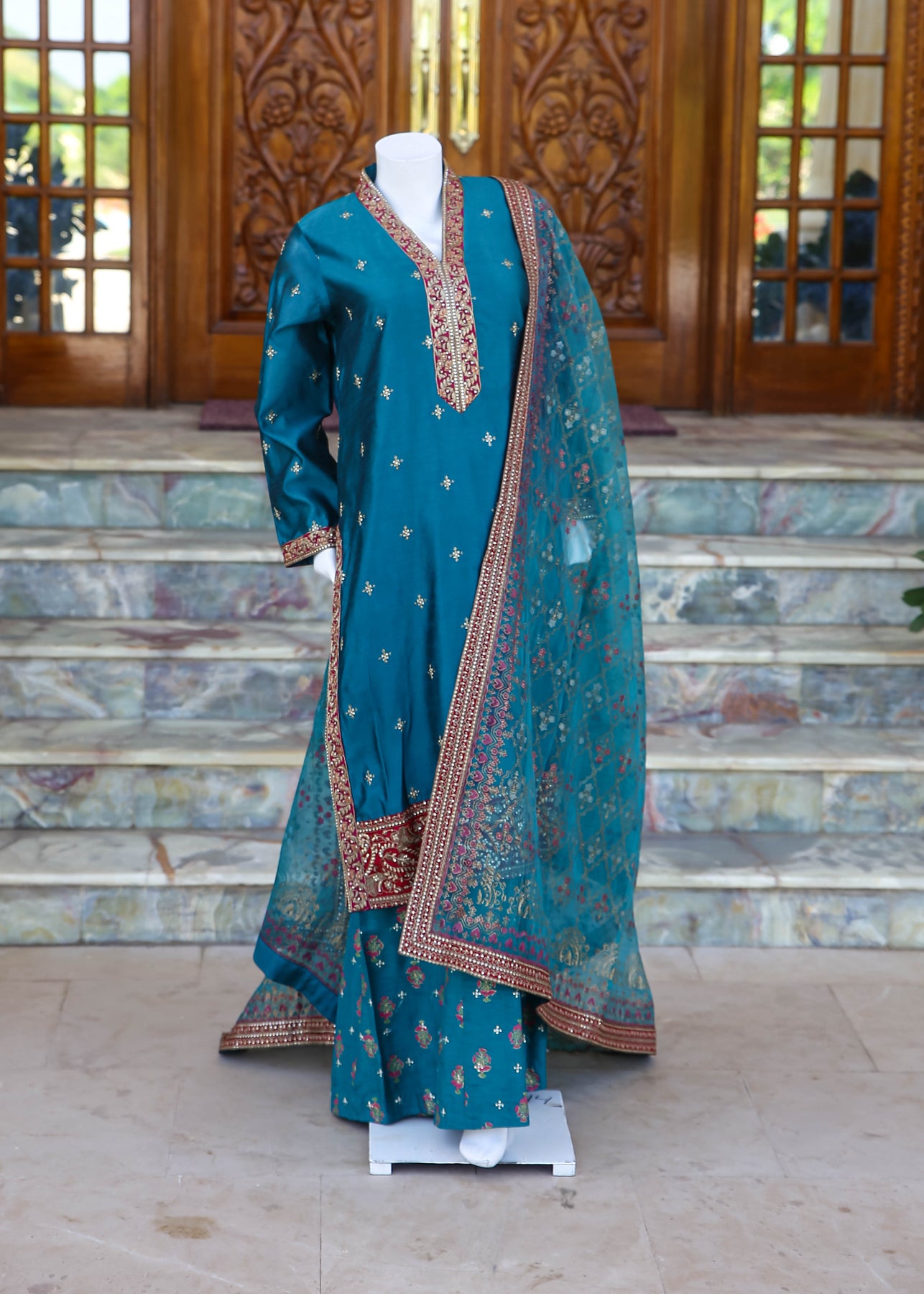 A premium, statement-worthy ensemble—perfect for weddings, festive events, and elegant occasions.